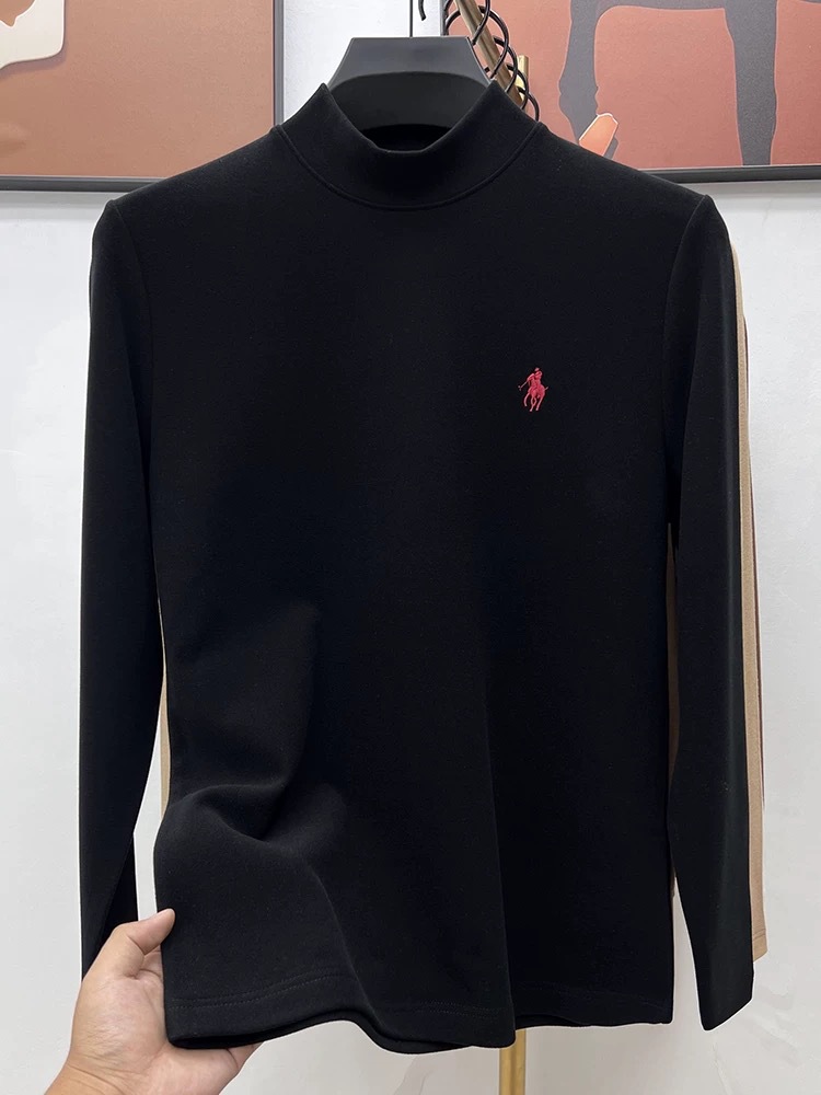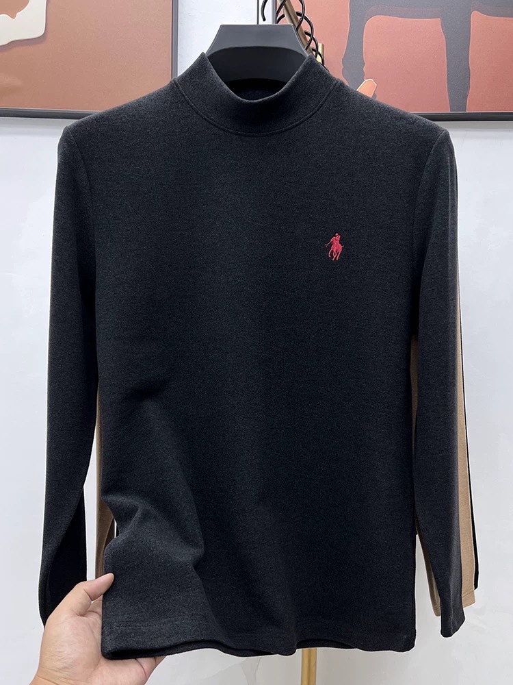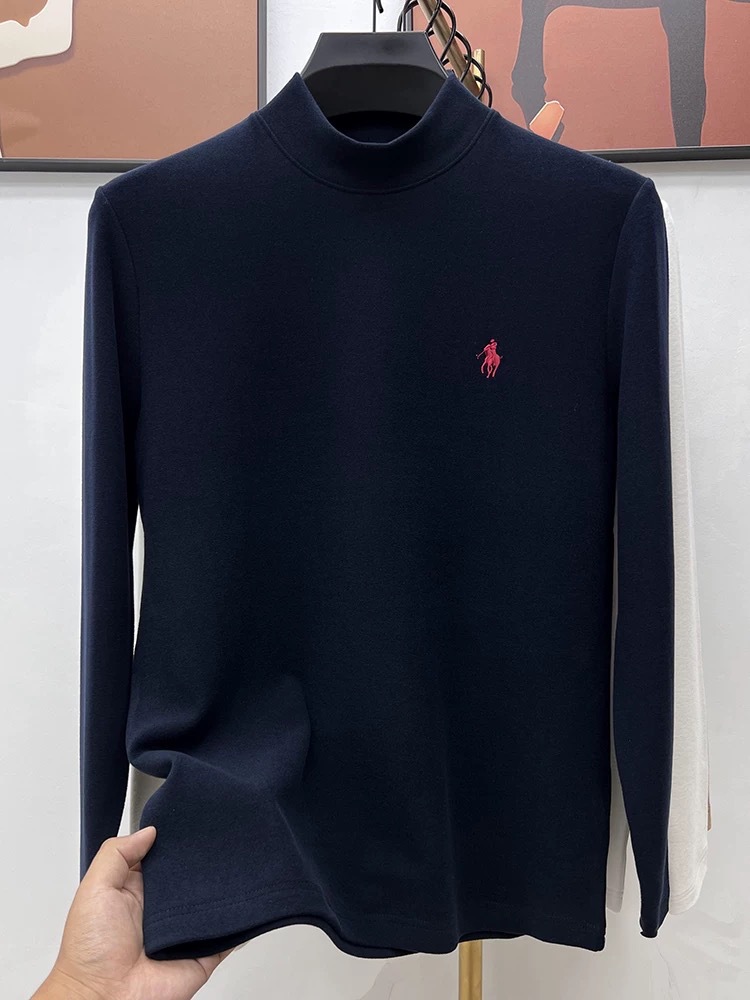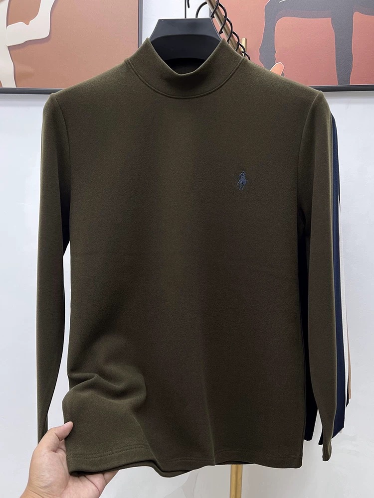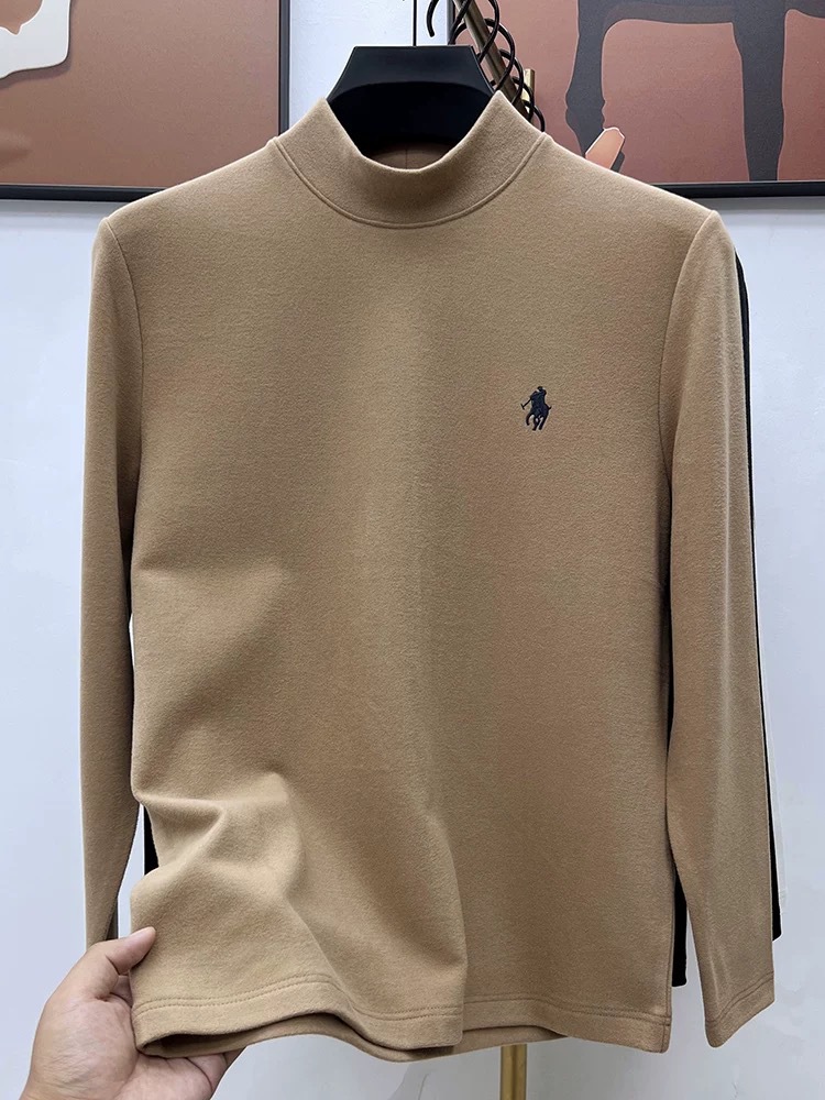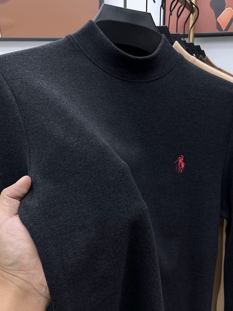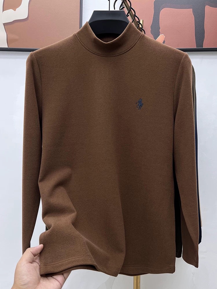 고급 양털베이스 셔츠 남자 반 높이 칼라 솔리드 컬러 긴팔 티셔츠 가을 및 겨울 양면 양털 따뜻한 스웨터