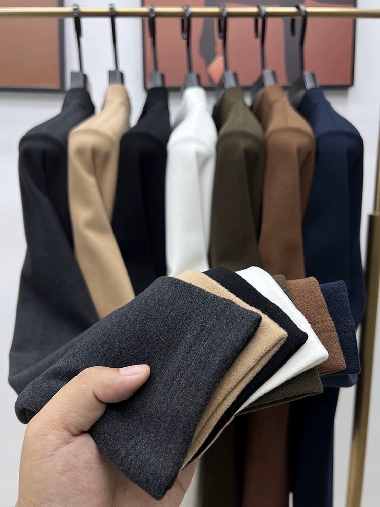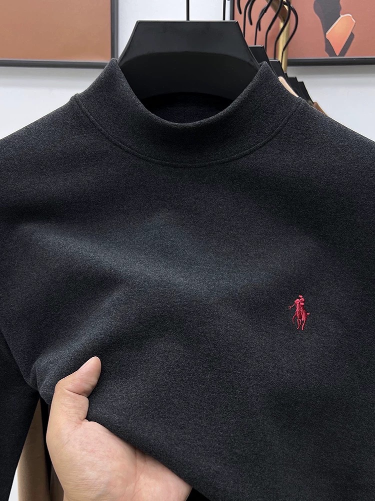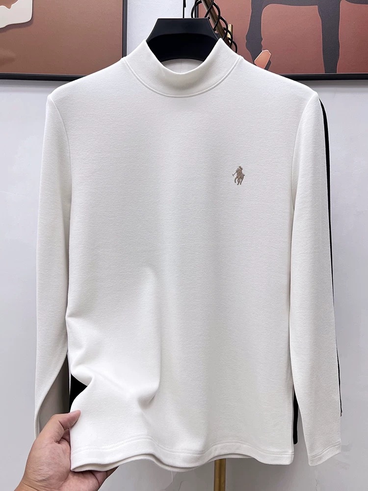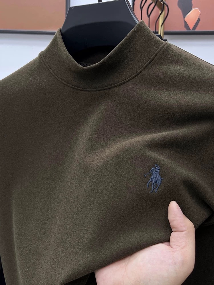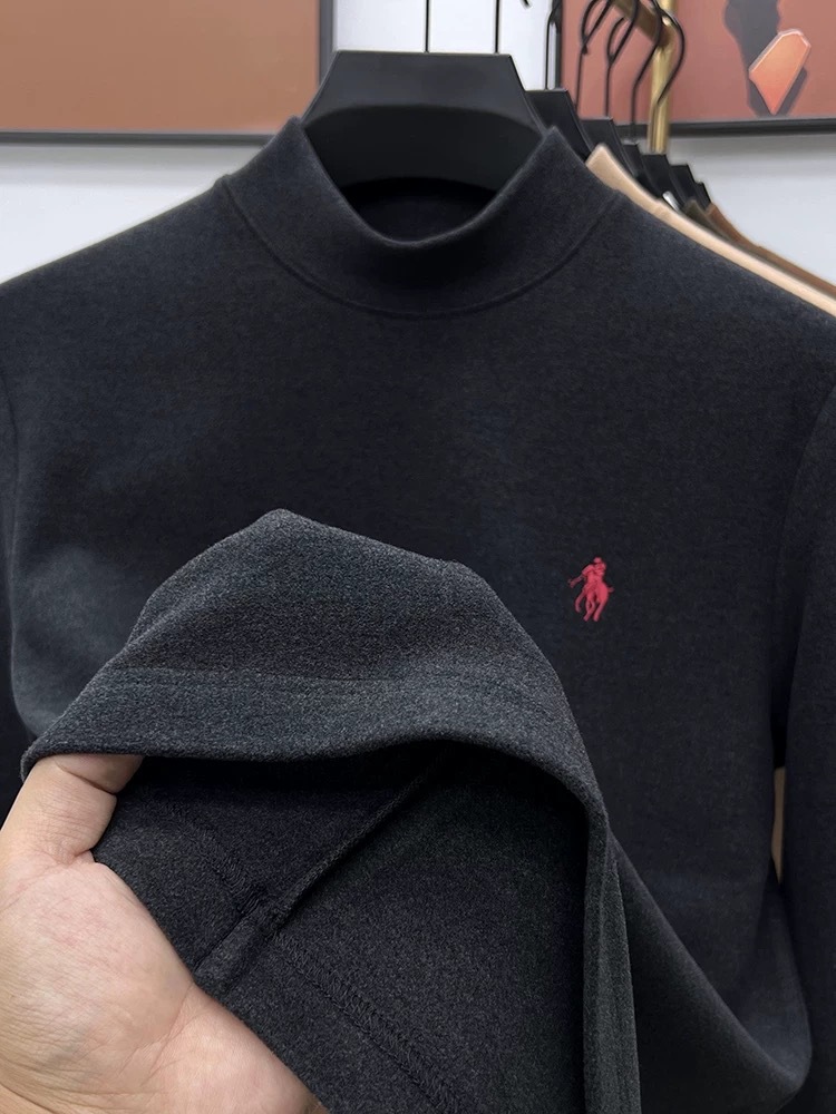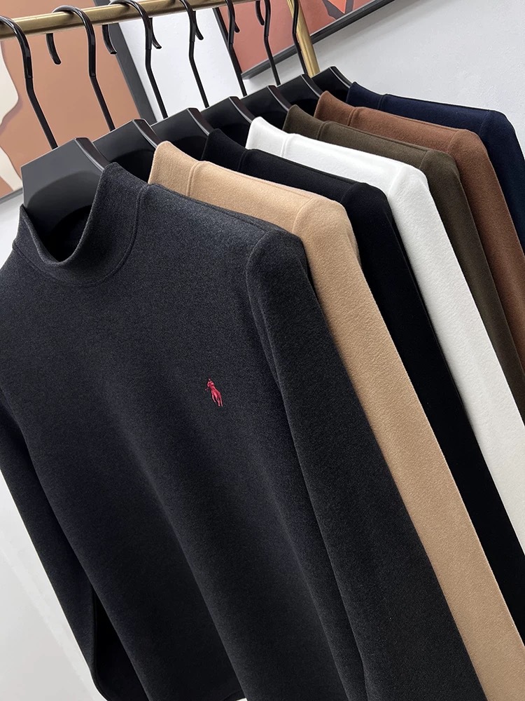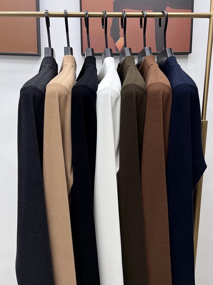 고급 양털베이스 셔츠 남자 반 높이 칼라 솔리드 컬러 긴팔 티셔츠 가을 및 겨울 양면 양털 따뜻한 스웨터
