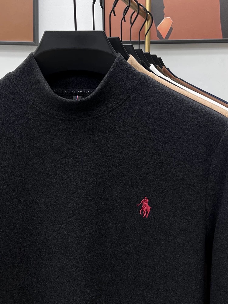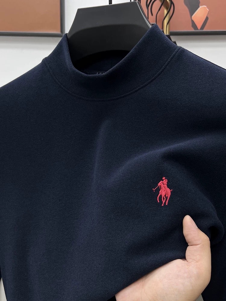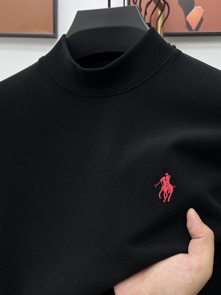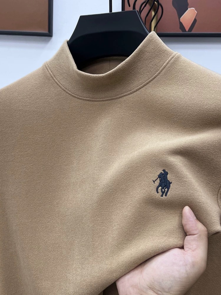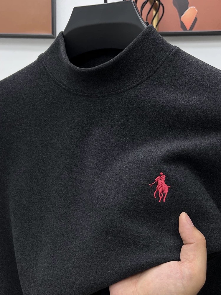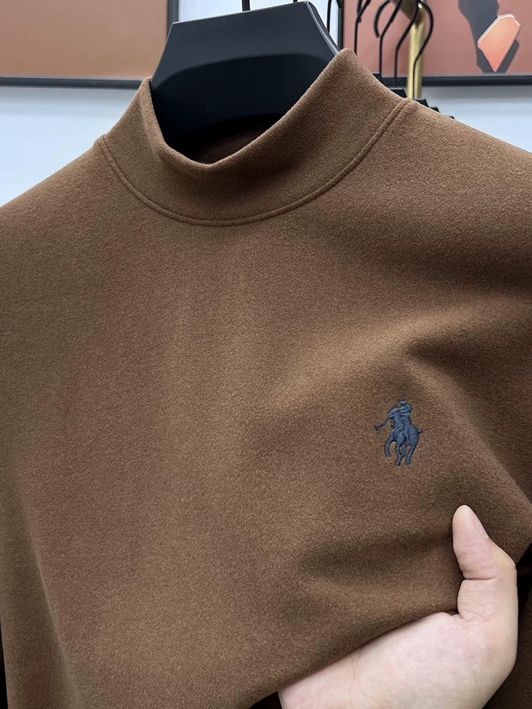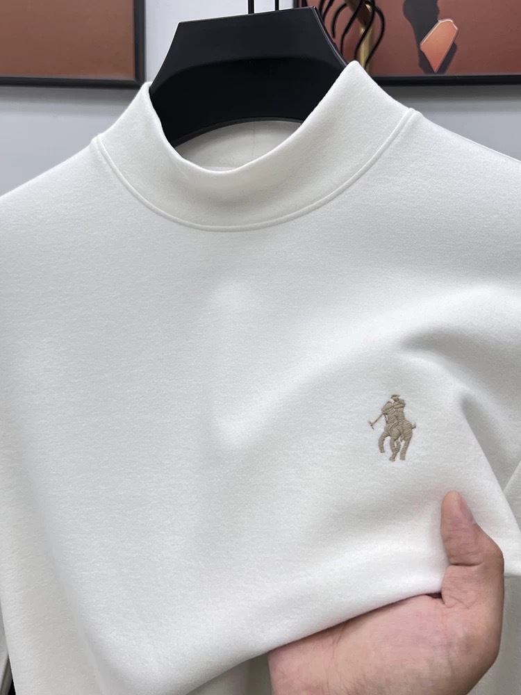 고급 양털베이스 셔츠 남자 반 높이 칼라 솔리드 컬러 긴팔 티셔츠 가을 및 겨울 양면 양털 따뜻한 스웨터