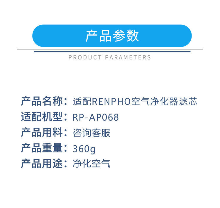 产品名称:适用于RENPHO空气净化器配件滤芯