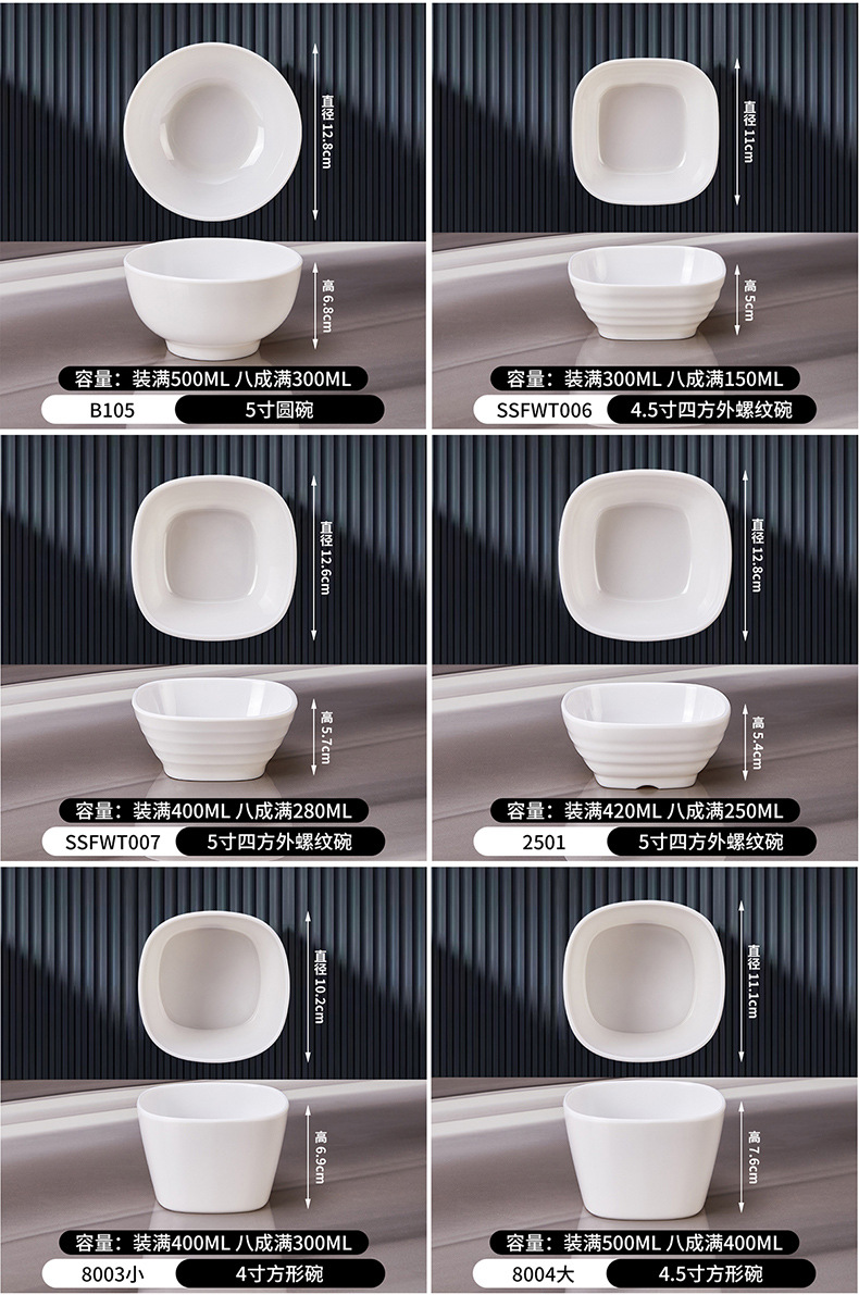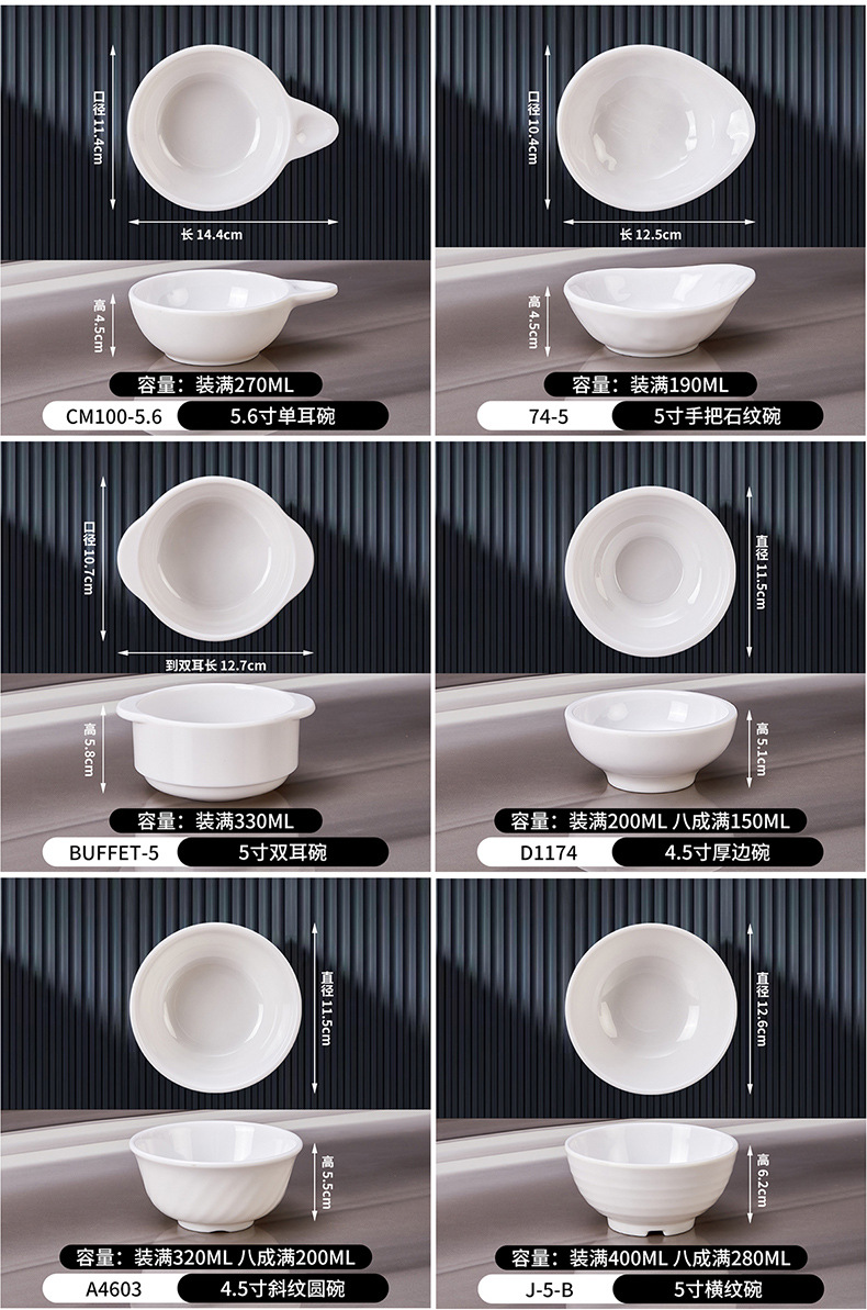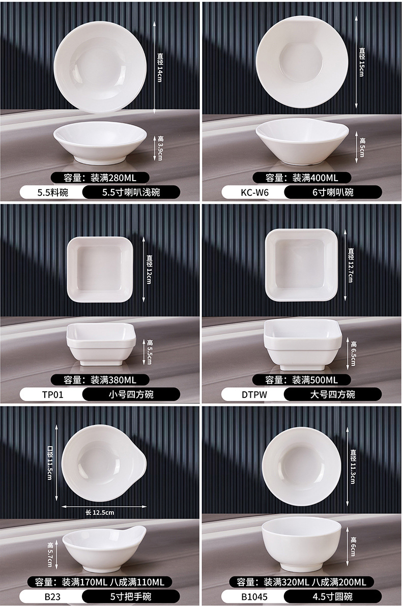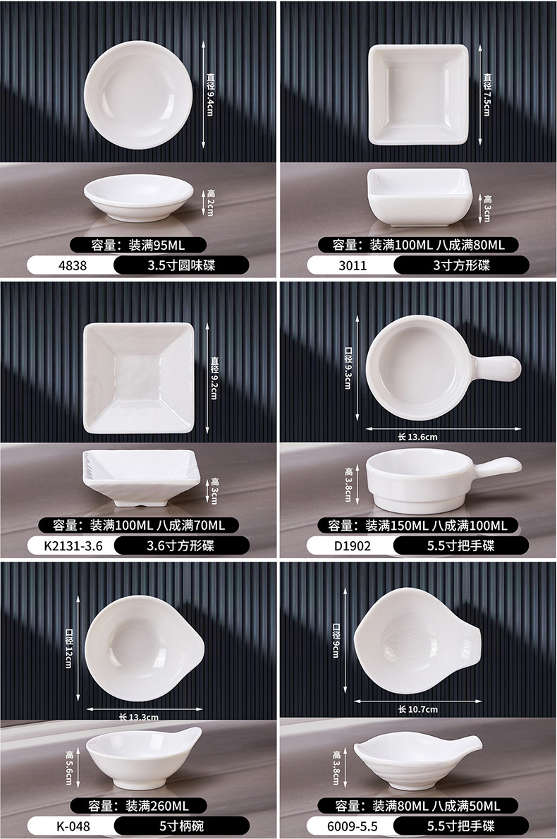 멜라민 접시 식기 식당의 작은 그릇 밥 그릇 상업 냄비 딥 그릇 조미료 접시 작은 접시 흰색 식사 컵