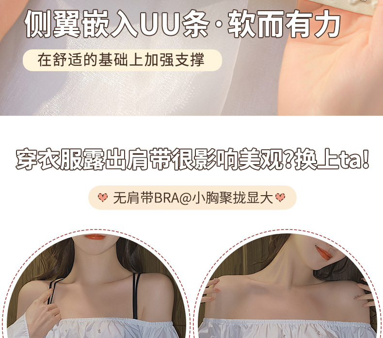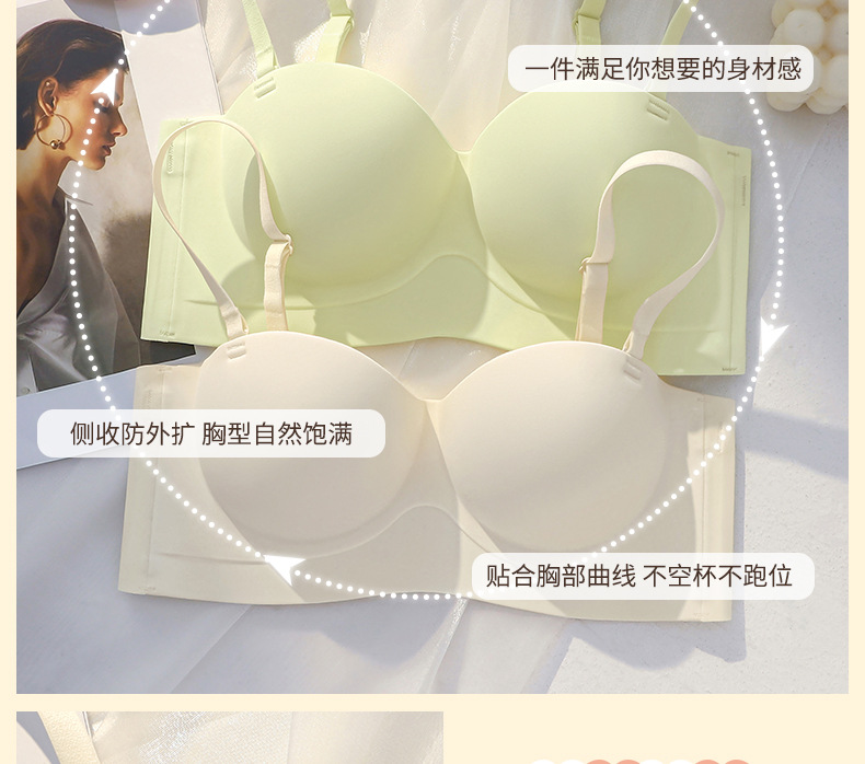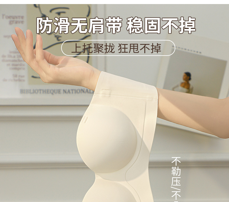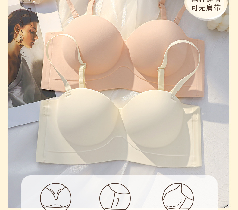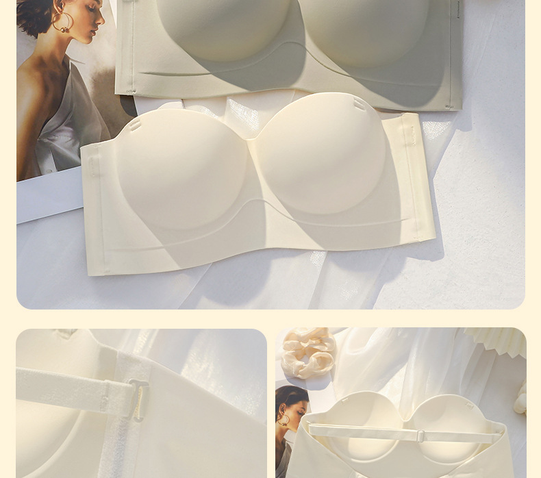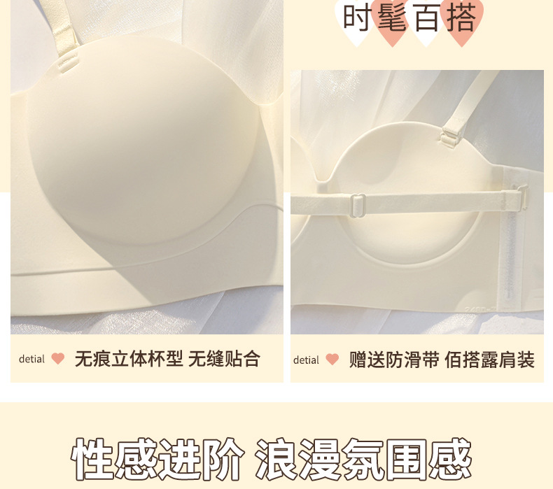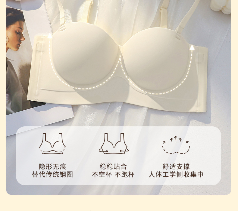 여성용 노라인 속옷, 작은 가슴을 모아 더 커 보이게 하고, 컵이 빈 공간이 없고, 옆가슴을 잡아주고, 처짐 방지, 여름용 하프컵, 스트랩리스 브라, 부드러운 소재