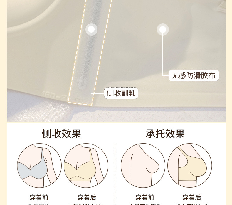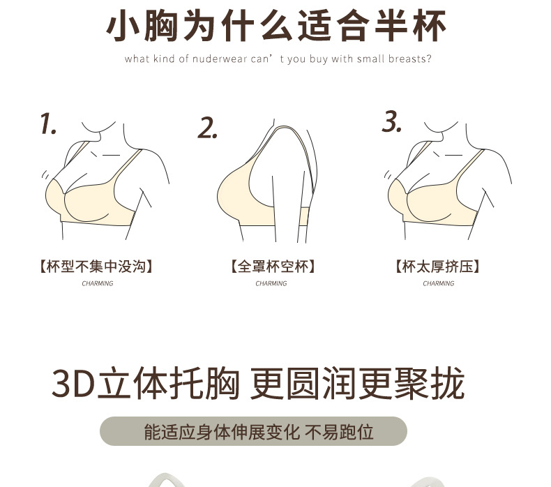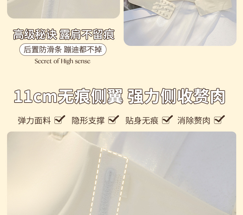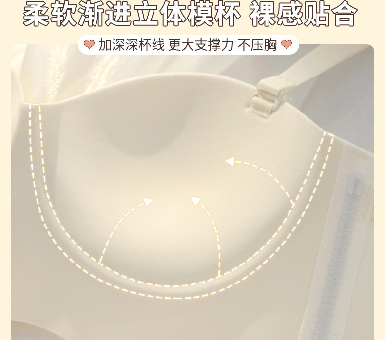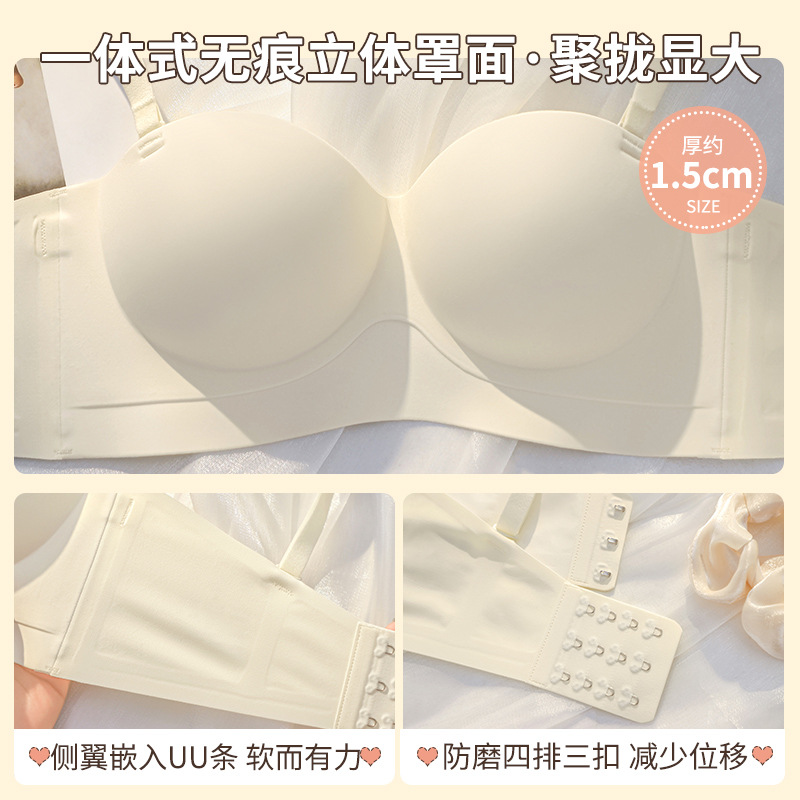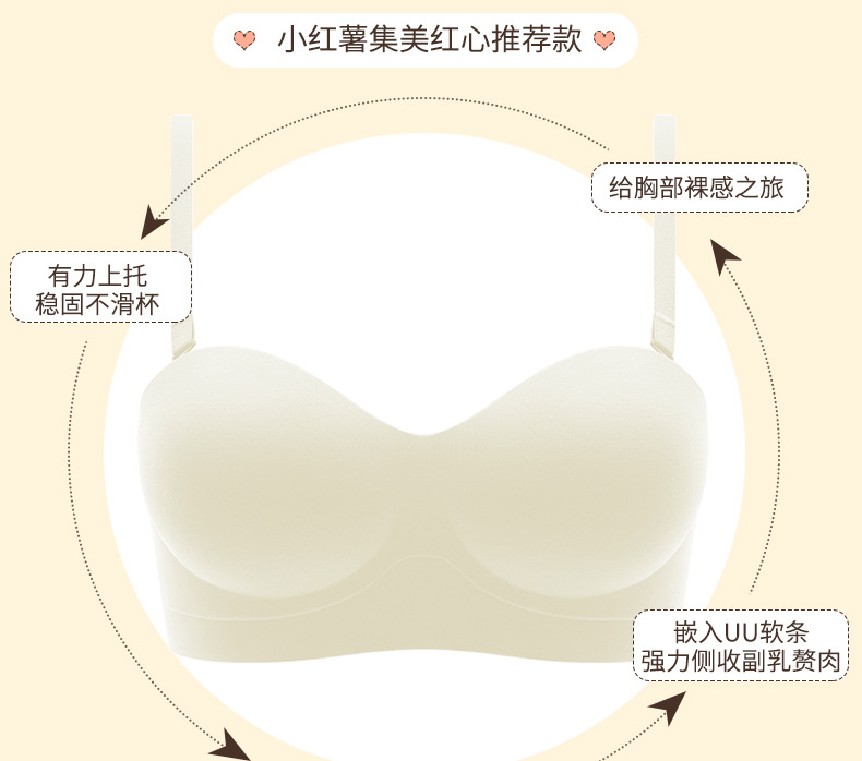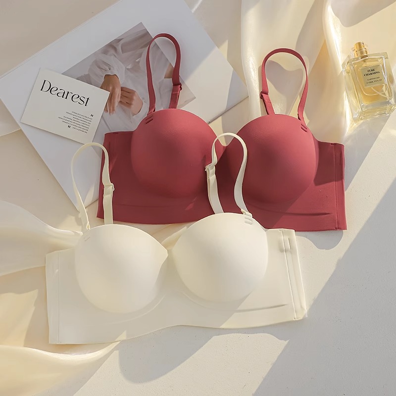 여성용 노라인 속옷, 작은 가슴을 모아 더 커 보이게 하고, 컵이 빈 공간이 없고, 옆가슴을 잡아주고, 처짐 방지, 여름용 하프컵, 스트랩리스 브라, 부드러운 소재