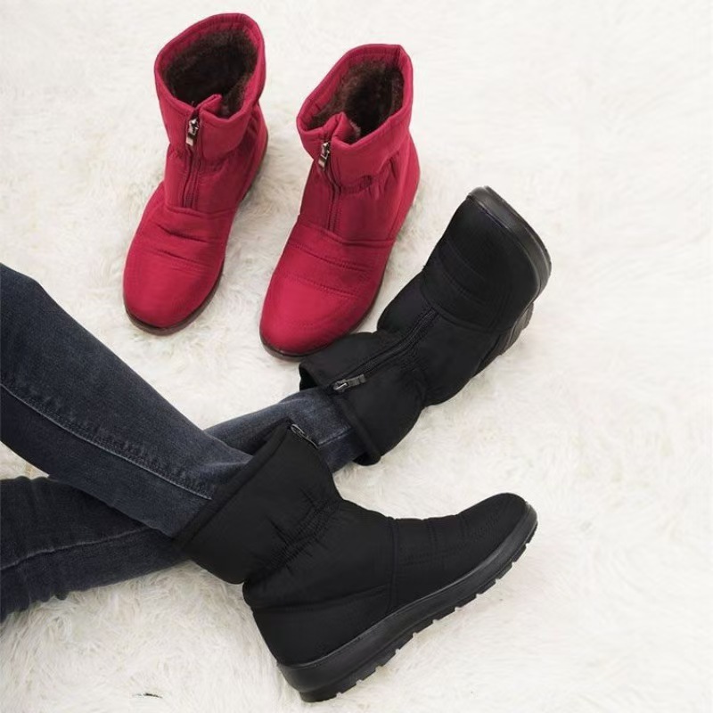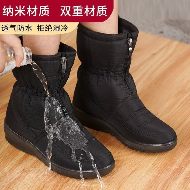 방수 스노우 부츠 여성의 2024 새로운 겨울 따뜻한 신발 어머니 신발 기모 두꺼운 미끄럼 방지 두꺼운 바닥 코튼 부츠 코튼 신발