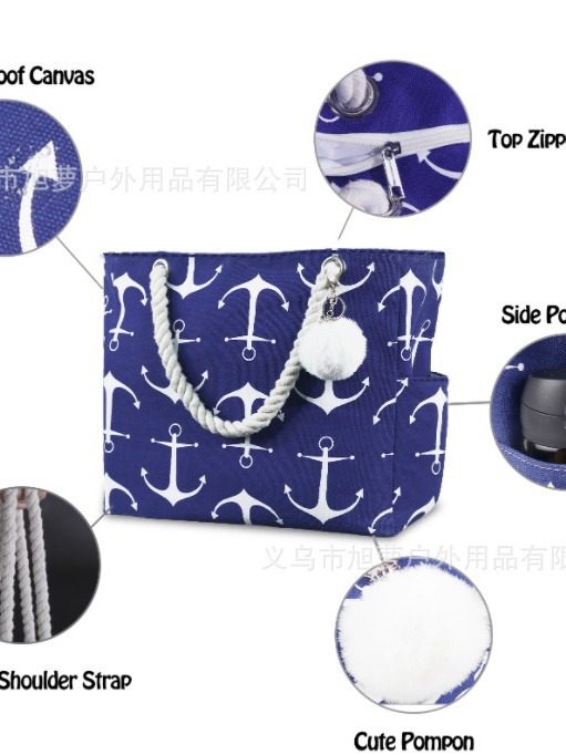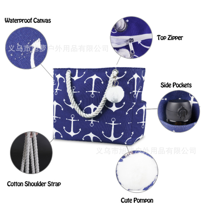 아마존 인기 토트백 네이비 블루 앵커 캔버스 다기능 핸드백 여행 비치백 여성 가방