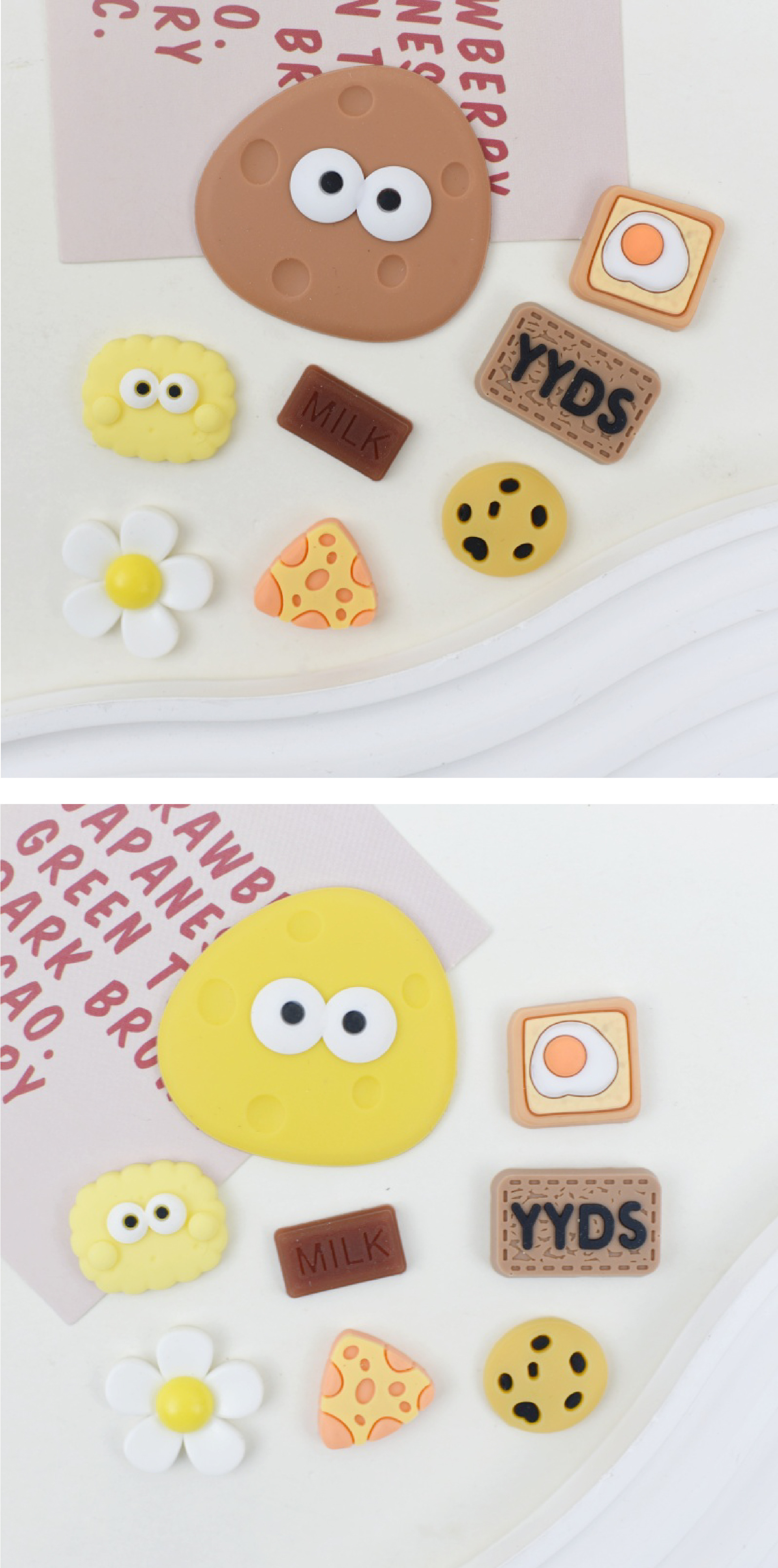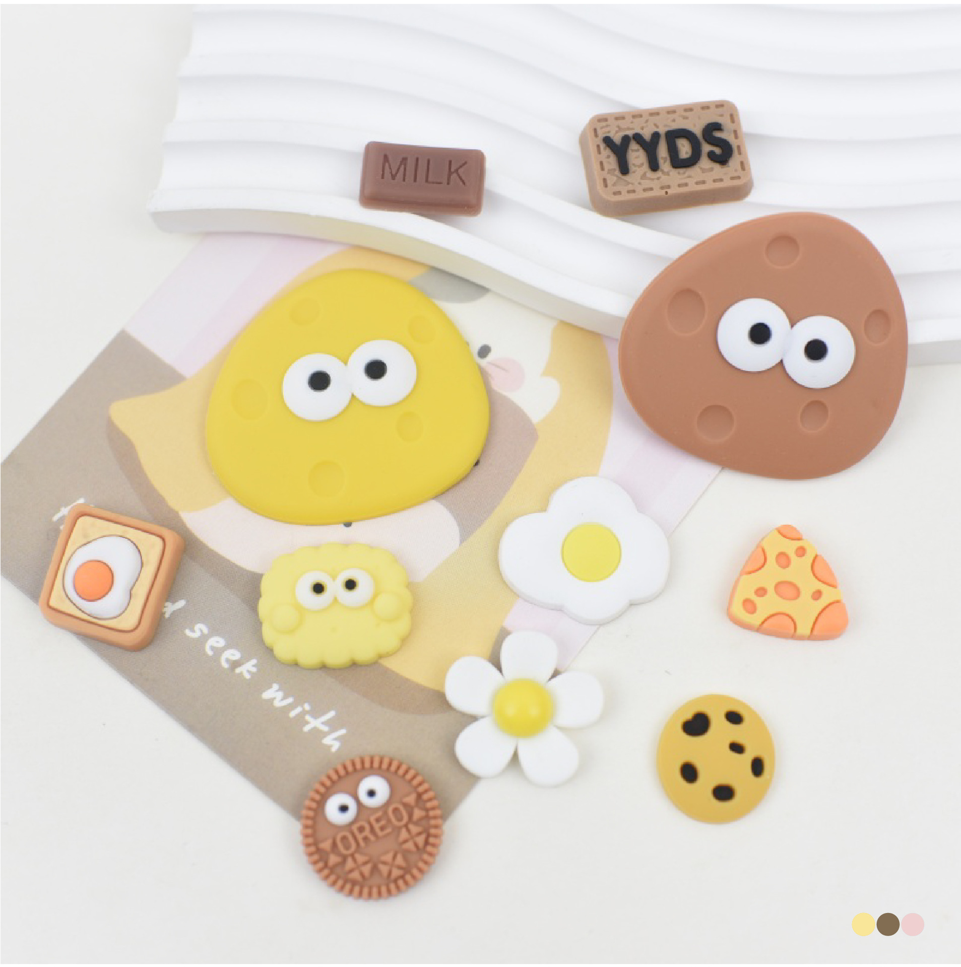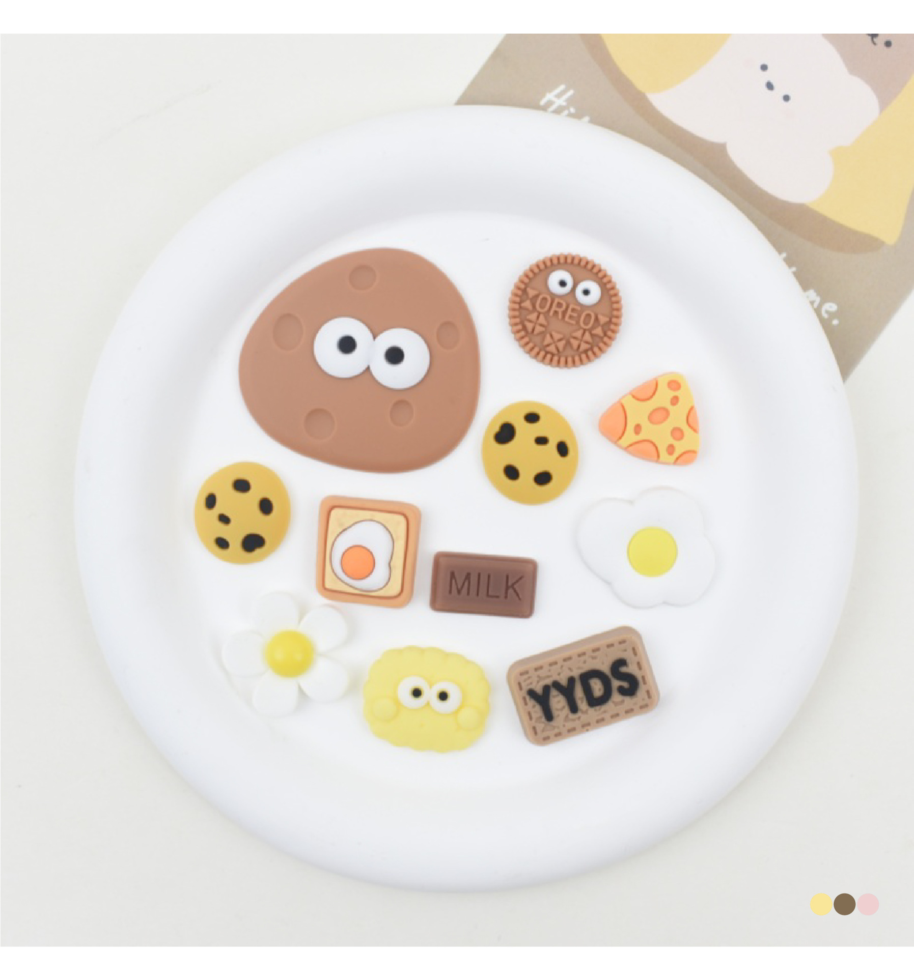 비스킷 시리즈 물 컵 스티커 3d 3 차원 스티커 보온병 컵 스티커 diy 냉장고 스티커 휴대 전화 스티커 구멍 신발 버클