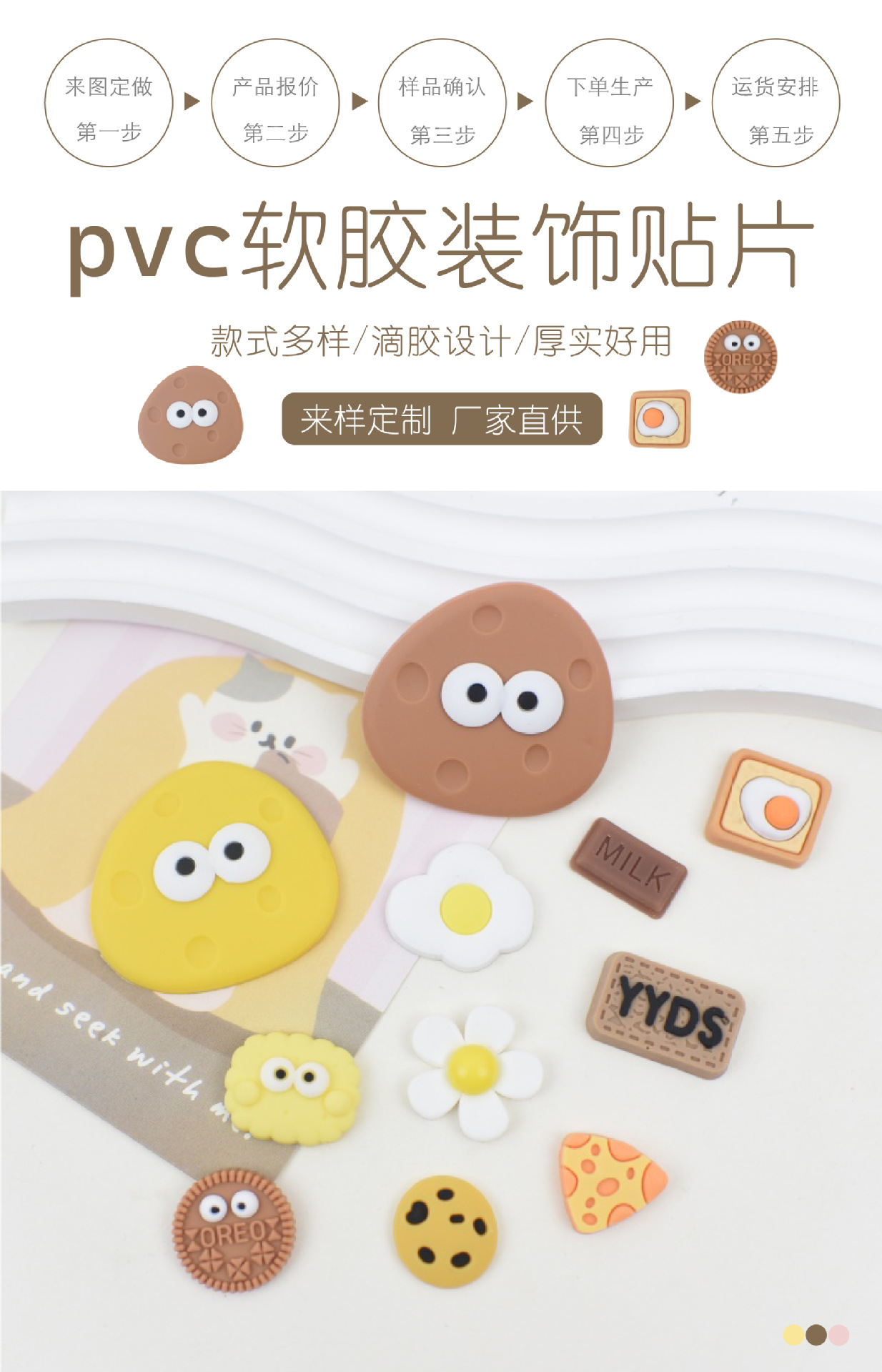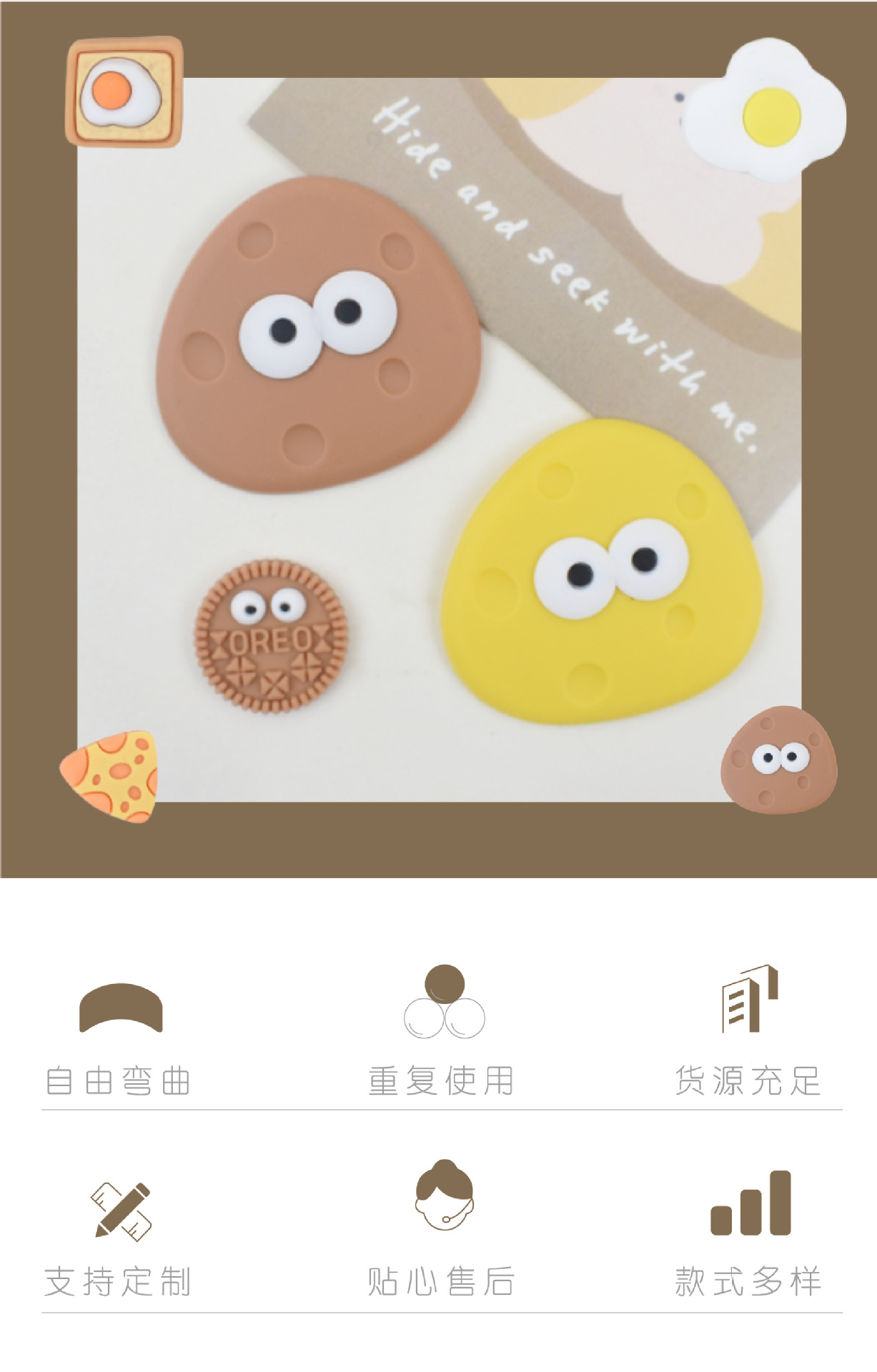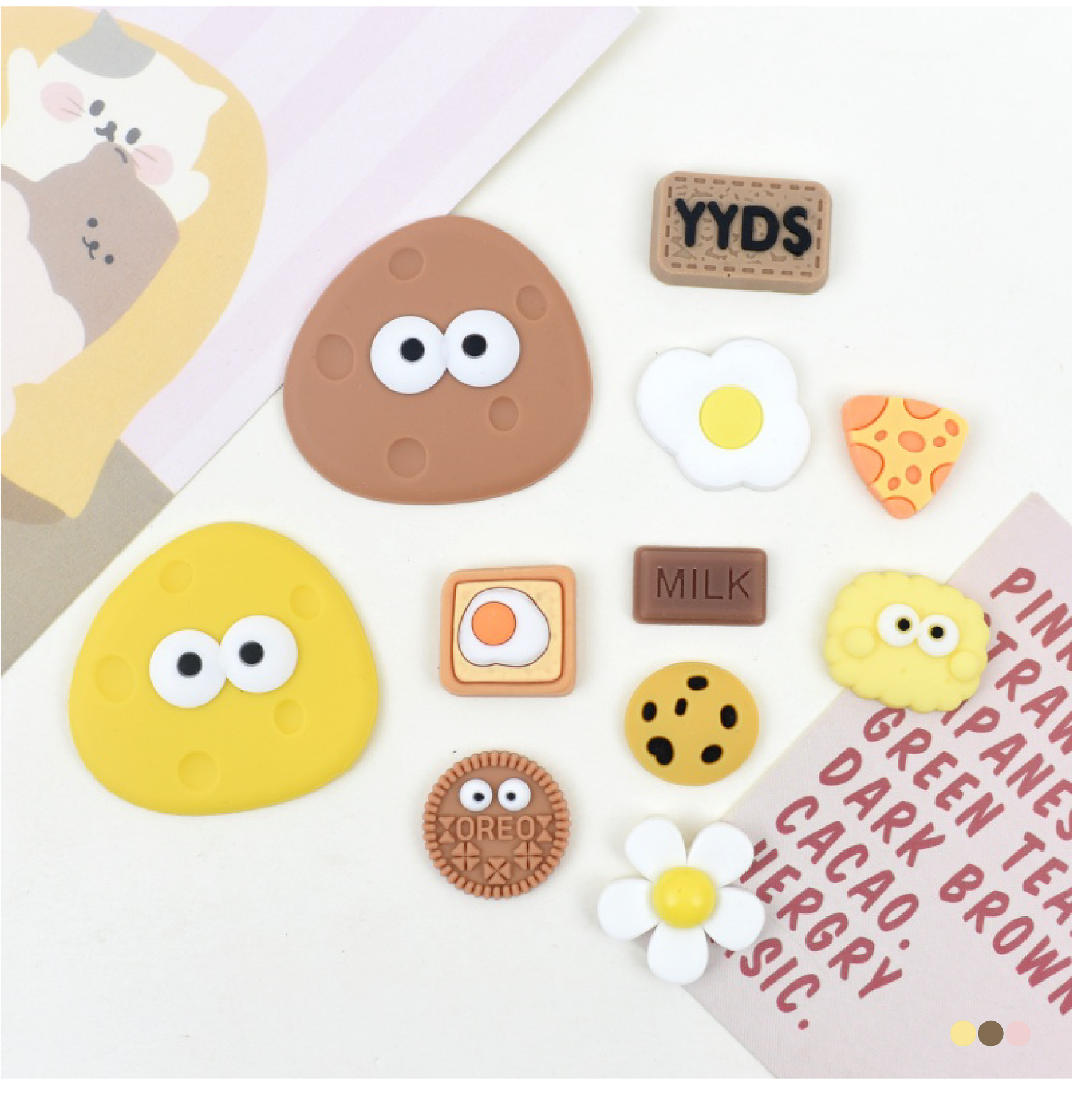 비스킷 시리즈 물 컵 스티커 3d 3 차원 스티커 보온병 컵 스티커 diy 냉장고 스티커 휴대 전화 스티커 구멍 신발 버클
