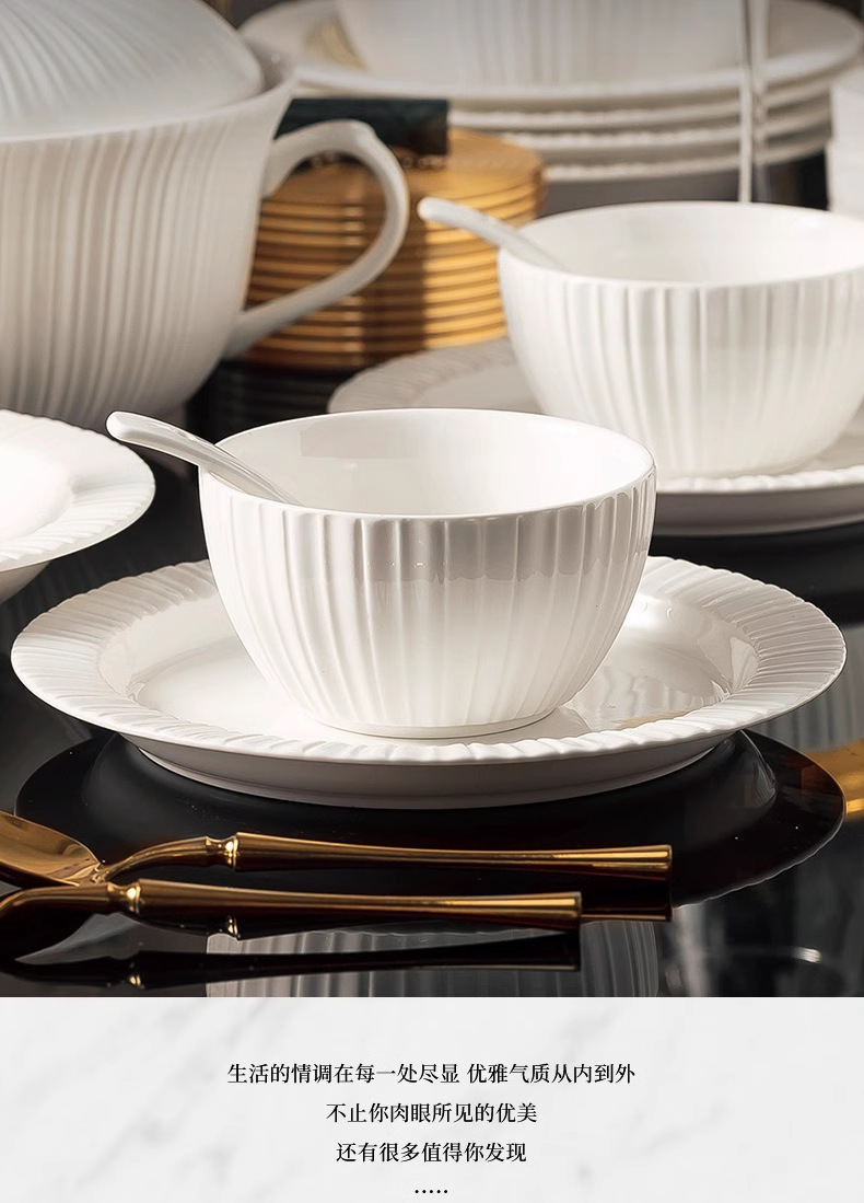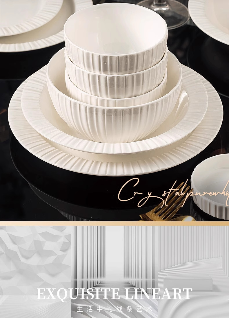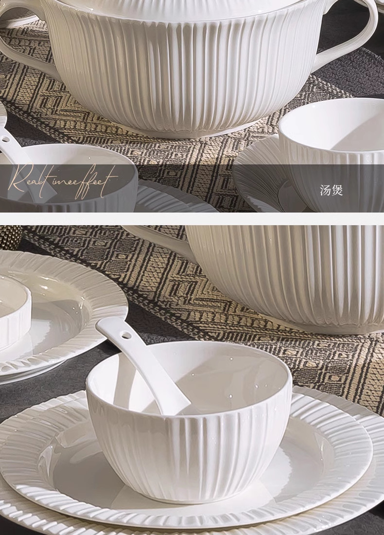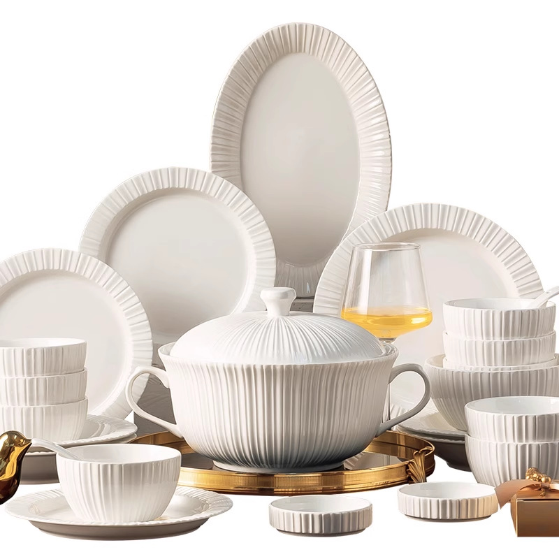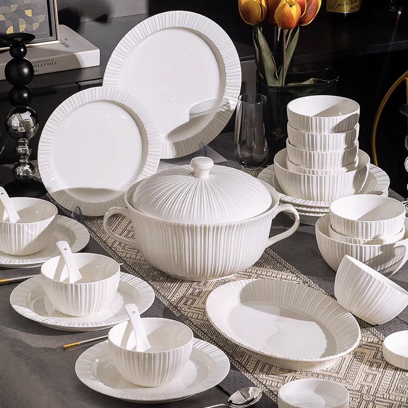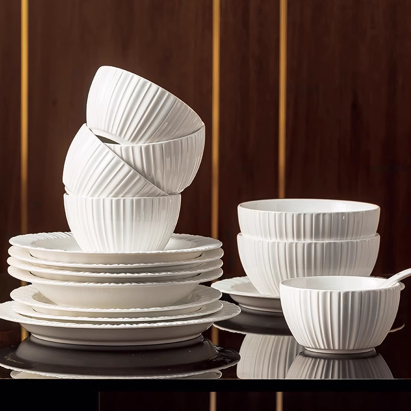 단일 Underglaze 컬러 다이닝 보울 Noule Bowl 2024 새로운 스타일 간단한 가벼운 럭셔리 요리 및 플레이트 가정용 고급 양각 식기