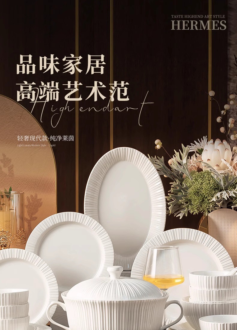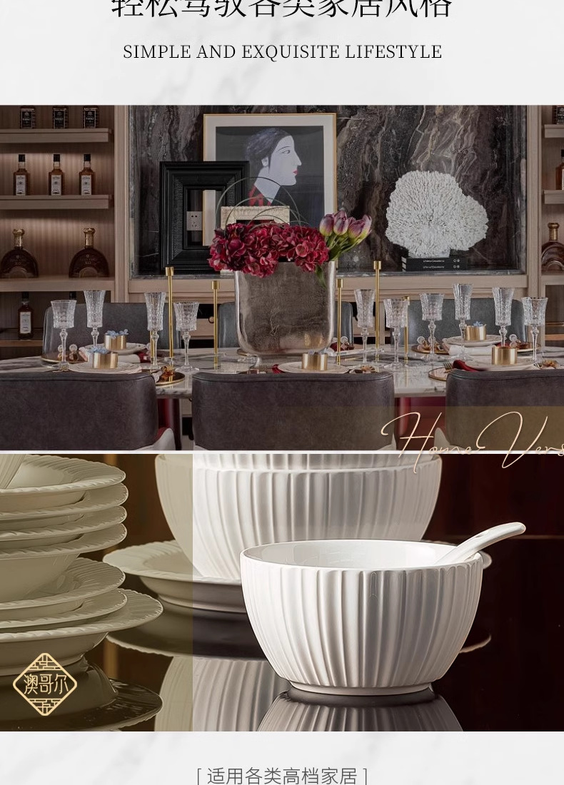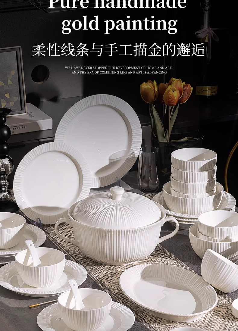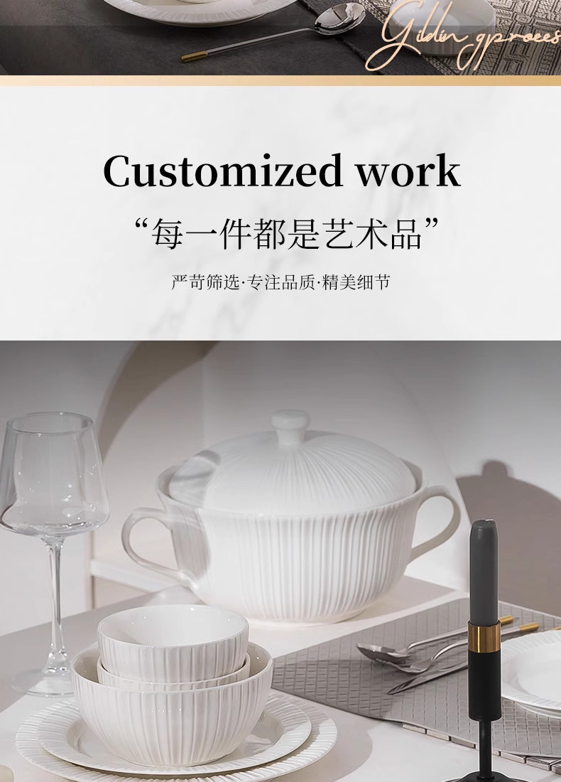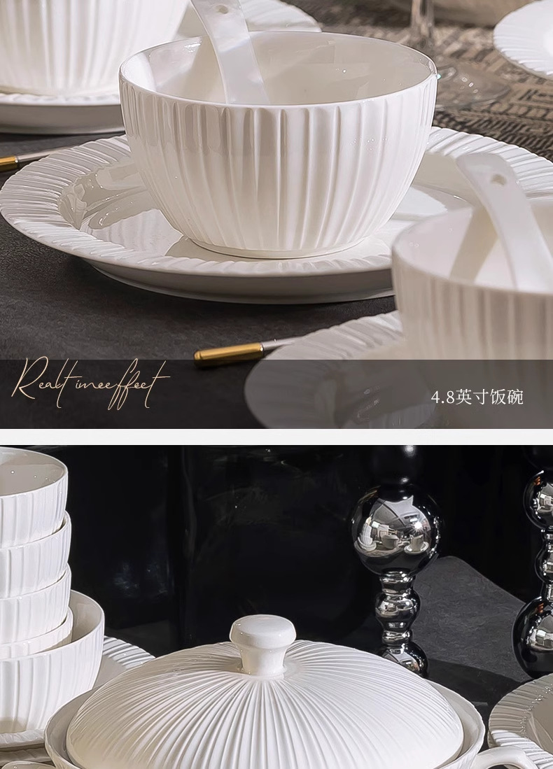 단일 Underglaze 컬러 다이닝 보울 Noule Bowl 2024 새로운 스타일 간단한 가벼운 럭셔리 요리 및 플레이트 가정용 고급 양각 식기
