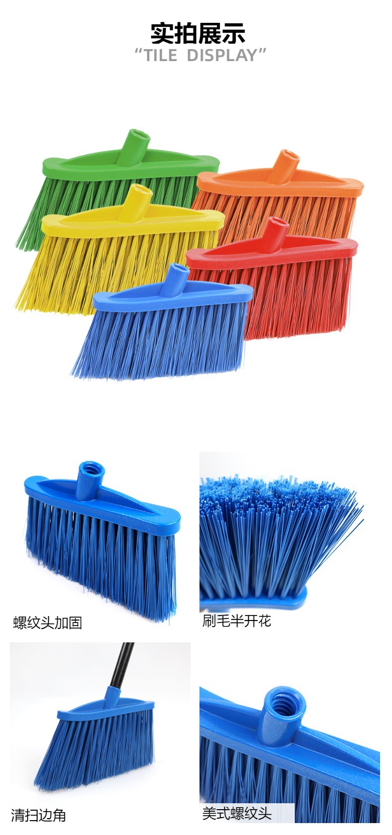 공장 도매 베벨 반 꽃 빗자루 청소 브러시 가사 보관 청소 플라스틱 도구 가정용