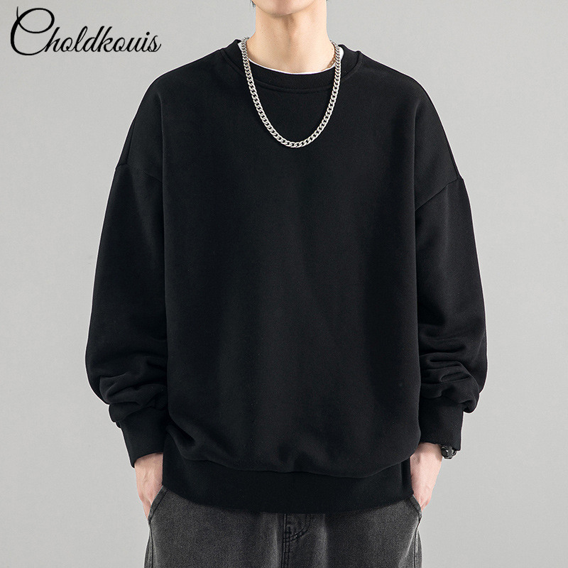 블랙 라운드넥 스웨트셔츠와 벨벳 스타일 - 솔리드 컬러 [GL]