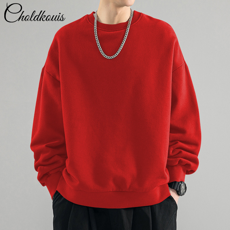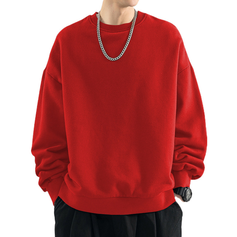 빅 레드 라운드넥 스웨트셔츠 플러스 벨벳 스타일 - 솔리드 컬러 [GL]