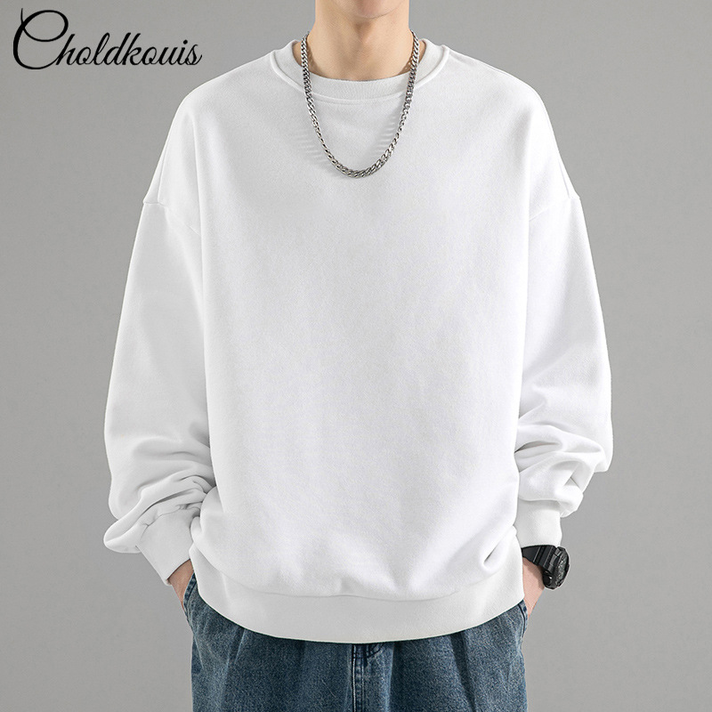 화이트 라운드넥 스웨트셔츠 레귤러 스타일 - 솔리드 컬러 [GL]