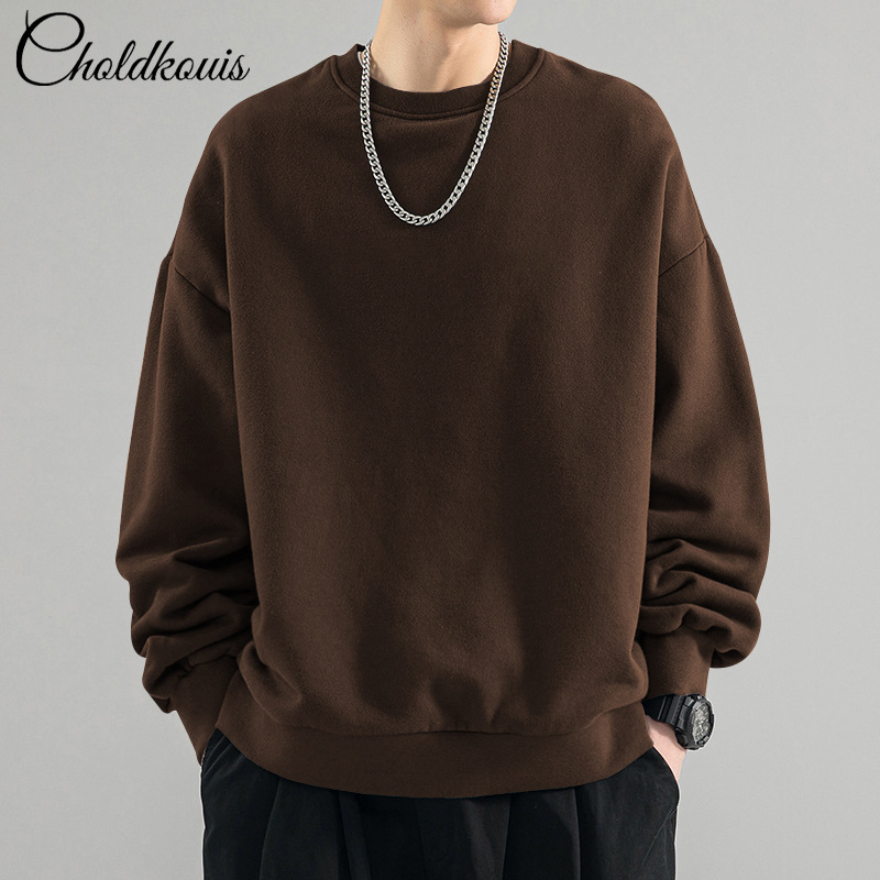 브라운 라운드넥 스웨트셔츠와 벨벳 스타일 - 솔리드 컬러 [GL]