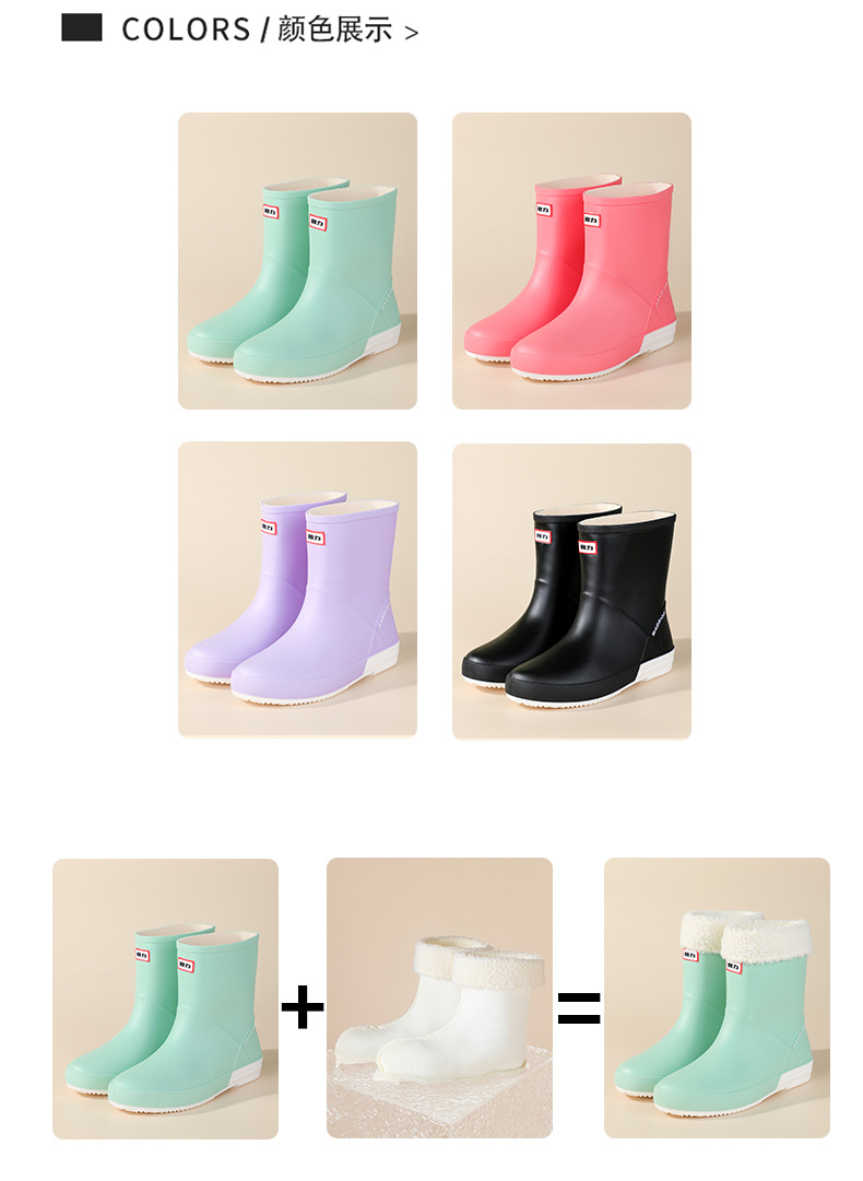여성용 패션 편안한 레인부츠, 미끄럼 방지, 내구성, 캐주얼 소프트솔 숏부츠