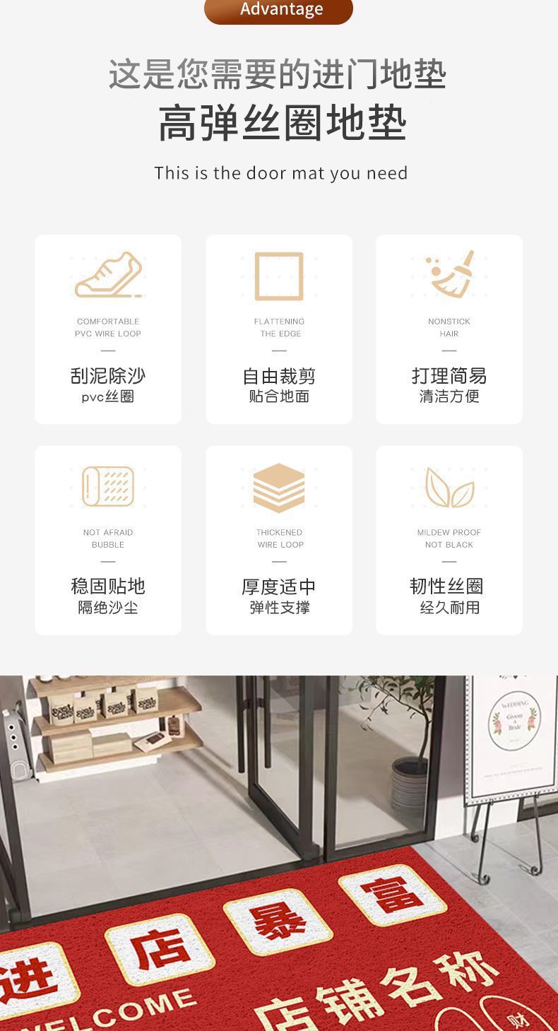 상업용 실크 링 바닥 매트 가게 입구 먼지 제거 발 매트 레드 환영 매트 내마모성 더러운 문 매트