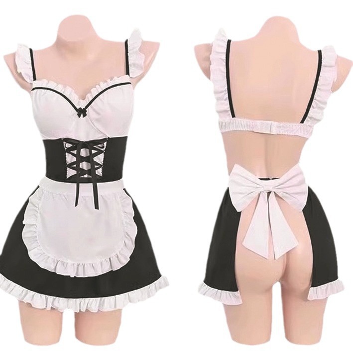 꽃무늬 바다풍 섹시 란제리, 순수하고 청순한 스타일의 슬립 드레스, 메이드복, 홈웨어 세트 A021