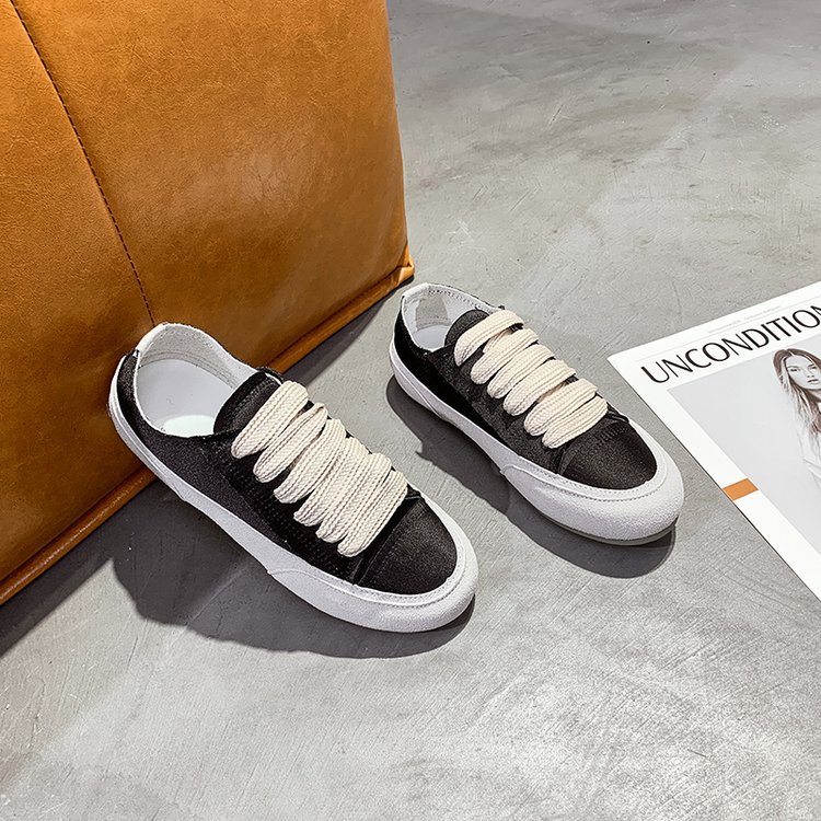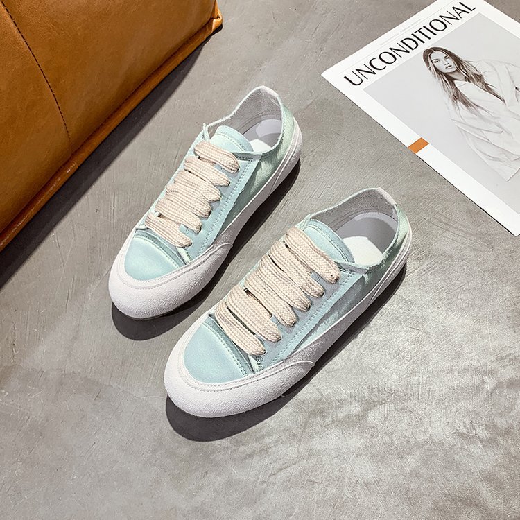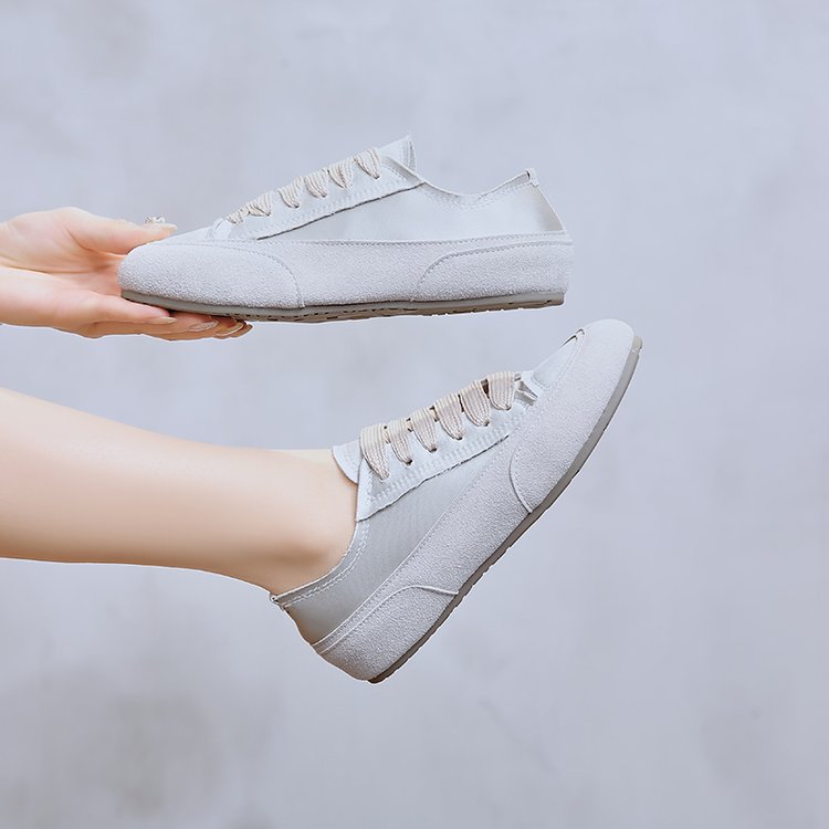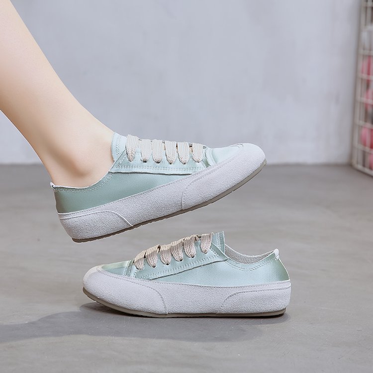여름 신상 여성 캐주얼 운동화, 새틴 소재 끈 묶는 부드러운 밑창 플랫 슈즈, 패셔너블한 여성화 도매