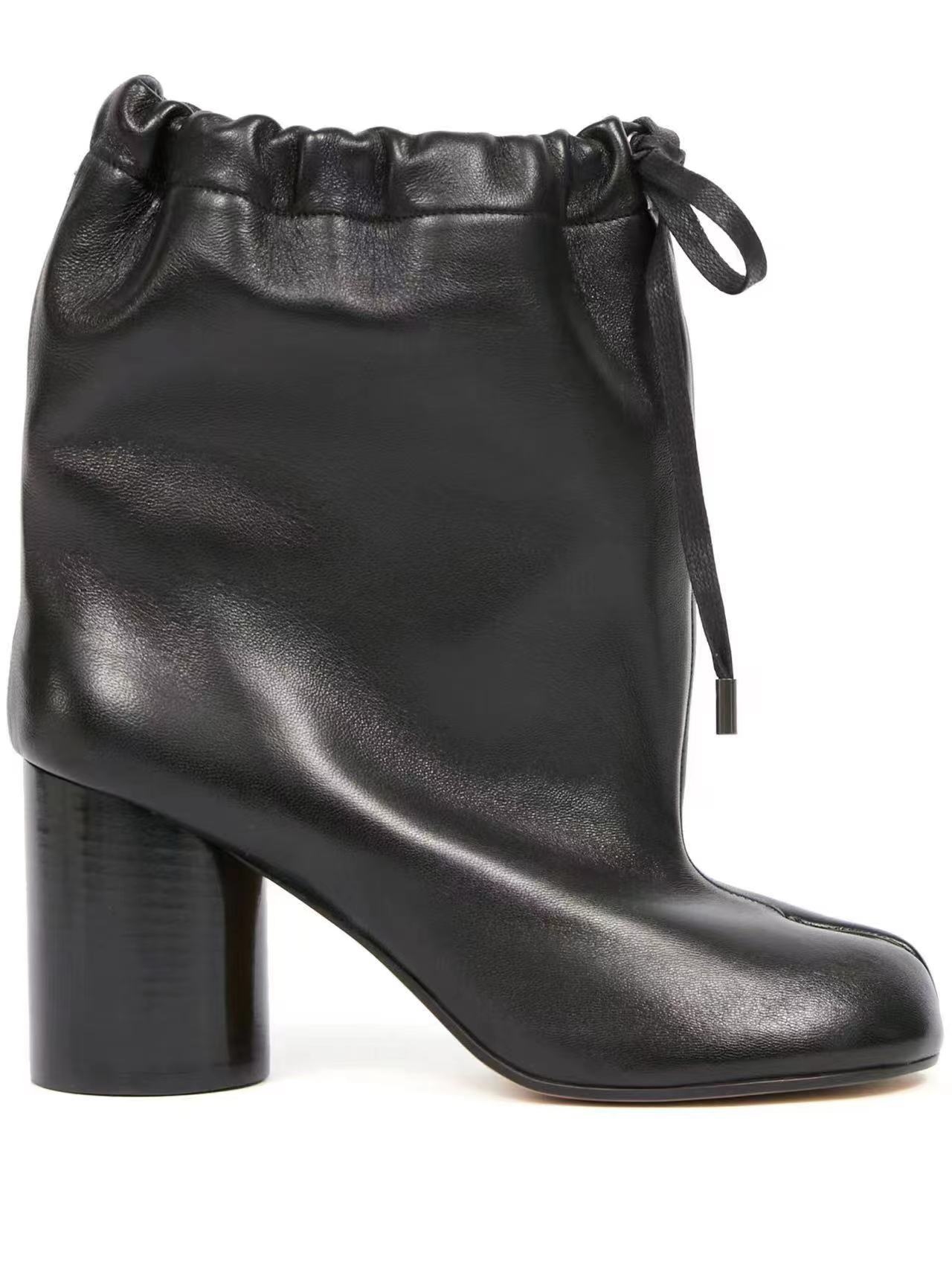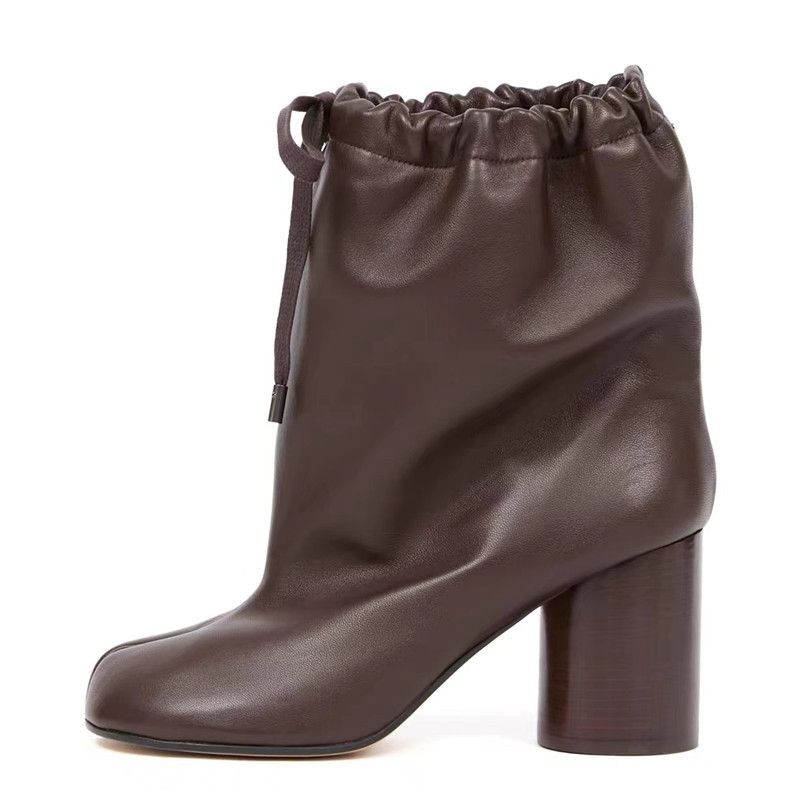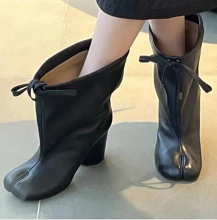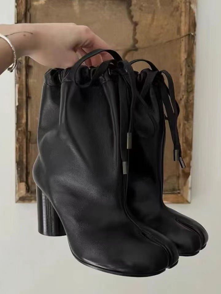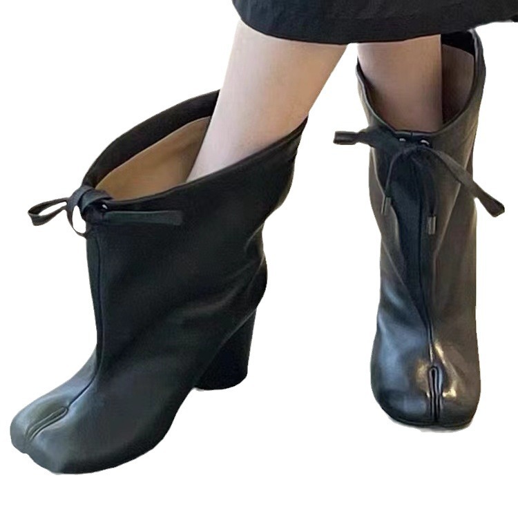 같은 스타일의 타비 스플릿 토 슈즈, 드로스트링 하이힐, 여성용 돼지발, 양발, 말발굽, 돼지발 중간부츠