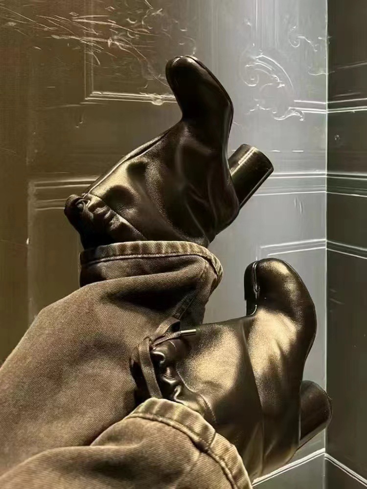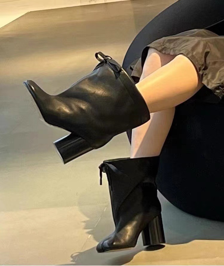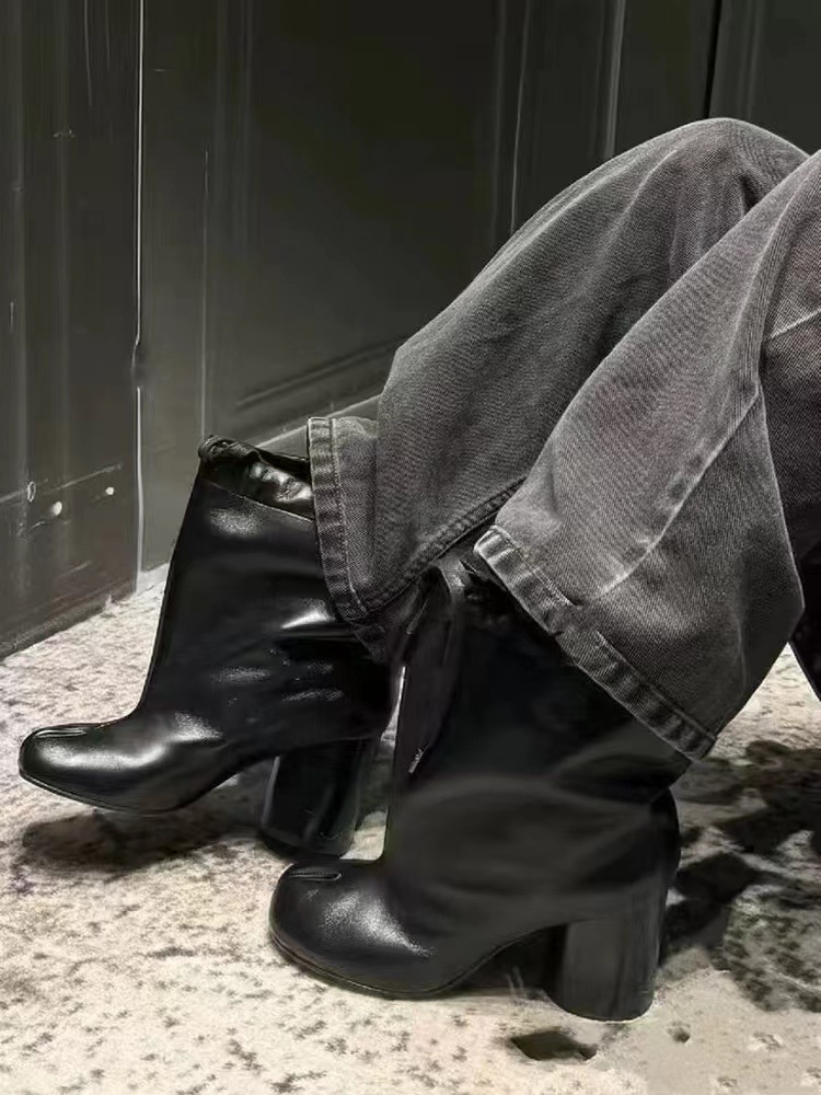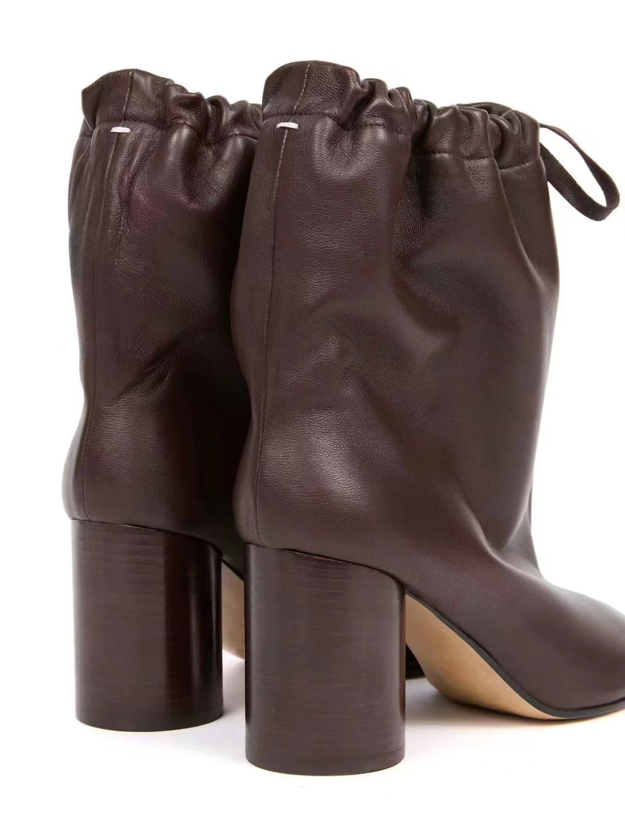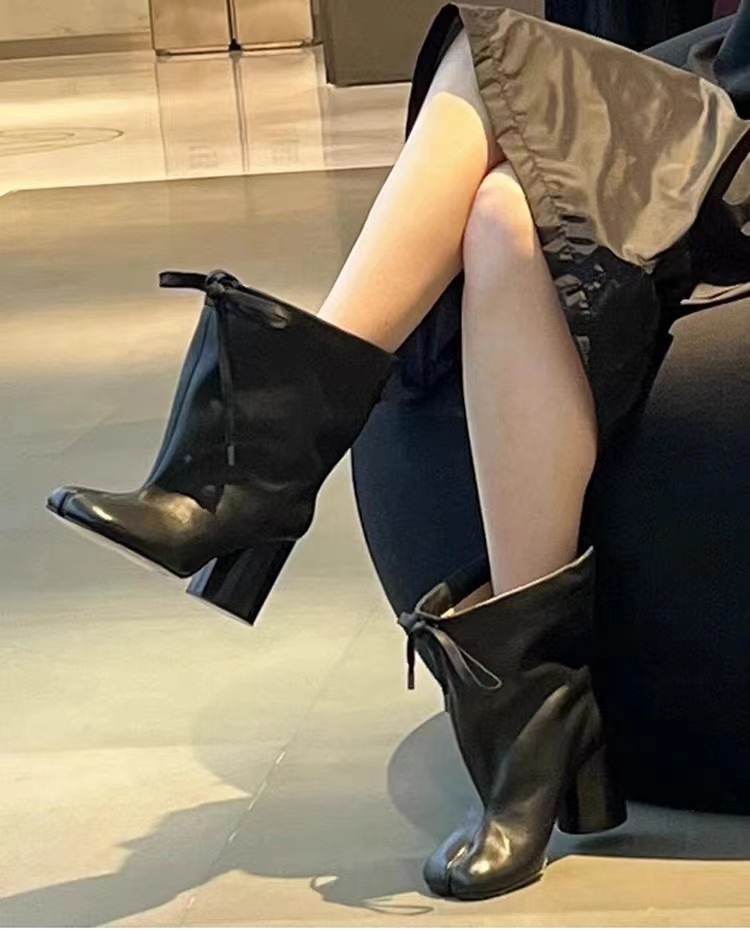 같은 스타일의 타비 스플릿 토 슈즈, 드로스트링 하이힐, 여성용 돼지발, 양발, 말발굽, 돼지발 중간부츠