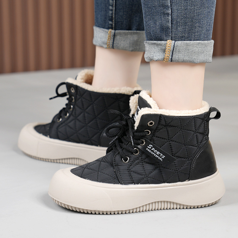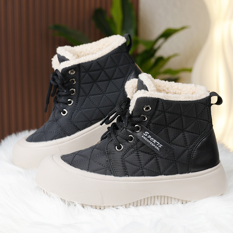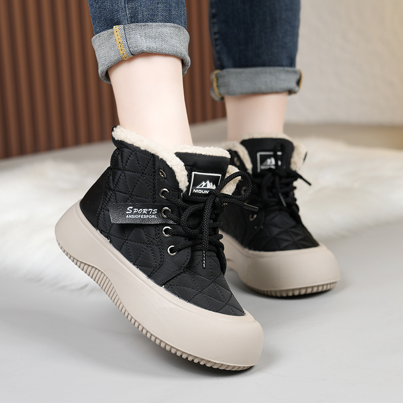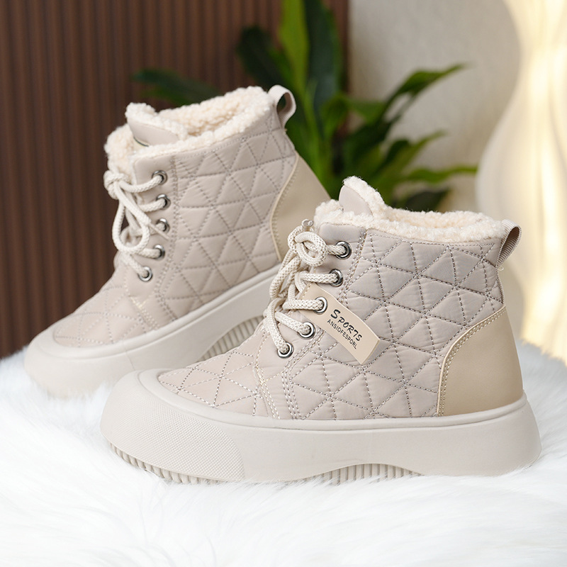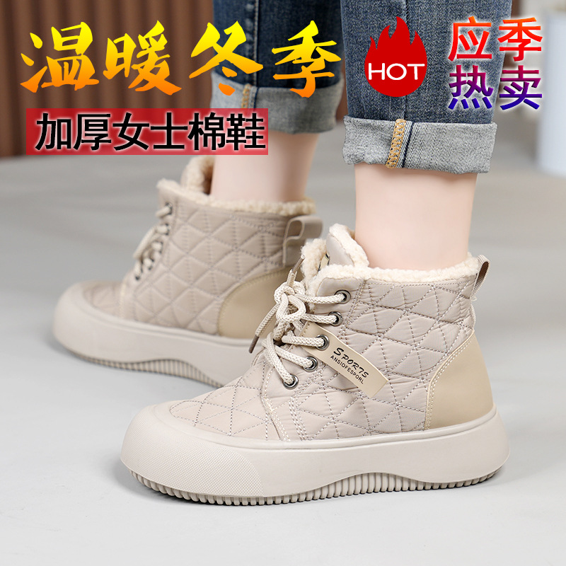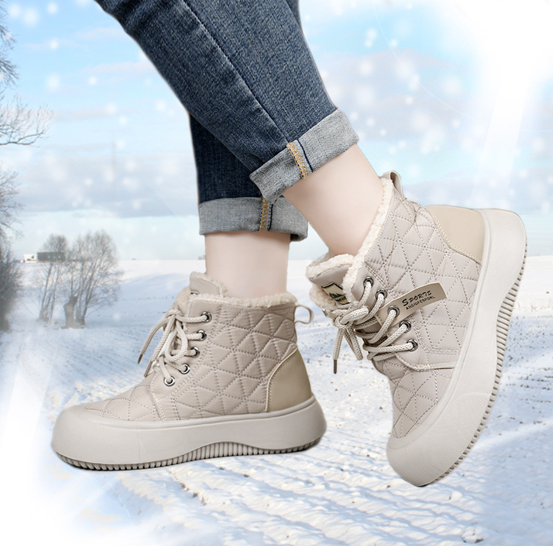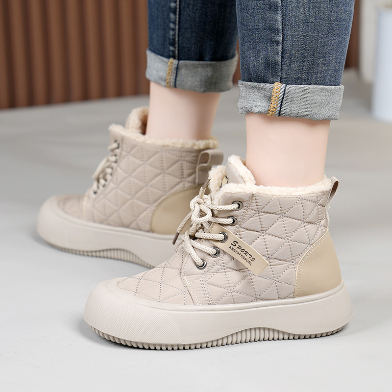새로운 겨울 기모 스노우 부츠 올드 베이징 코튼 부츠 편안한 미들 레이스 업 캐주얼 올 매치 쇼트 부츠 여성용 스노우 부츠