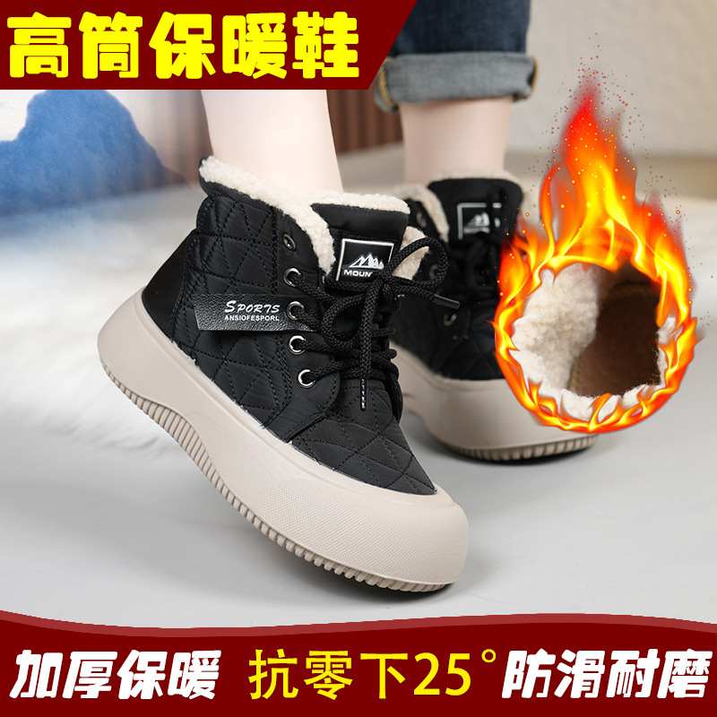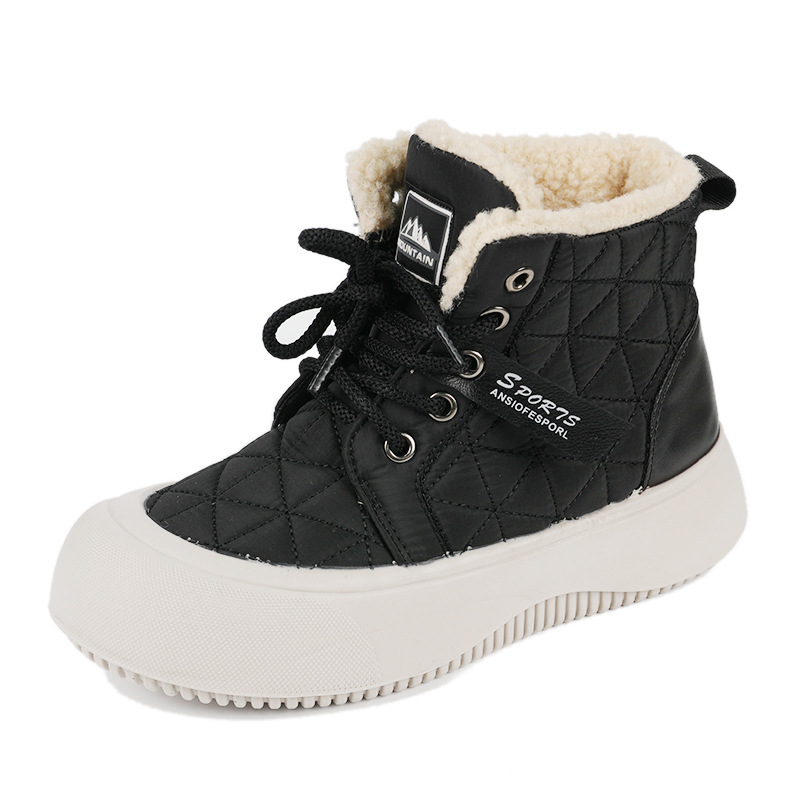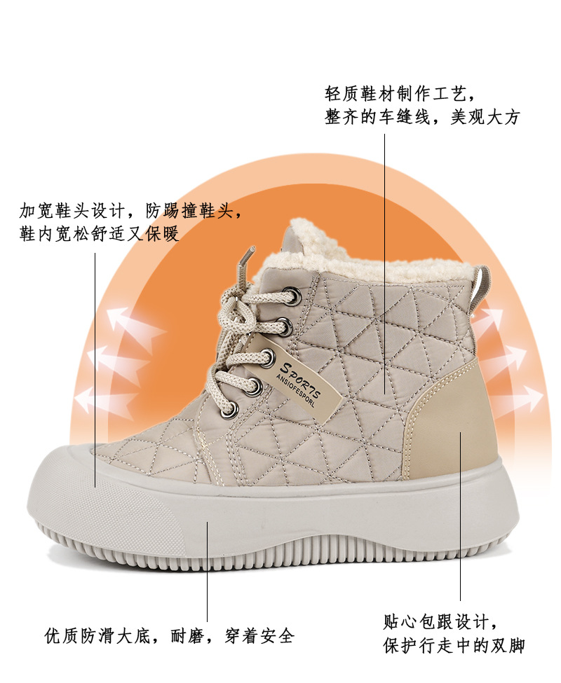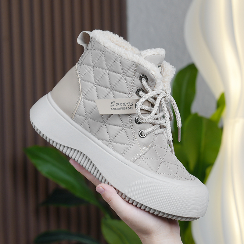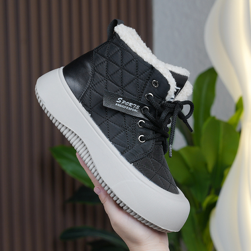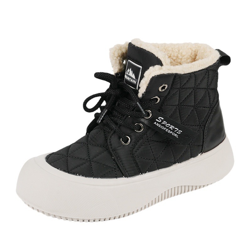 새로운 겨울 기모 스노우 부츠 올드 베이징 코튼 부츠 편안한 미들 레이스 업 캐주얼 올 매치 쇼트 부츠 여성용 스노우 부츠