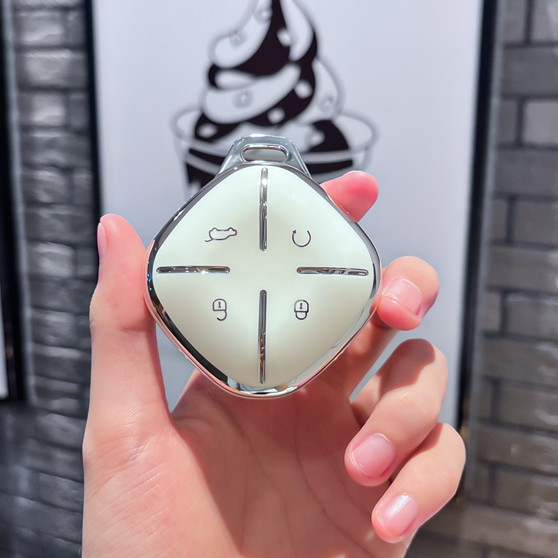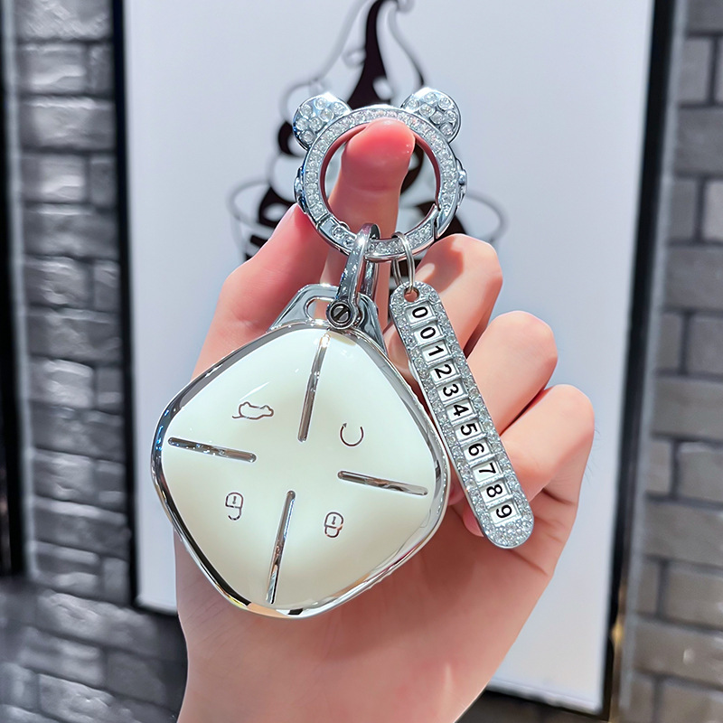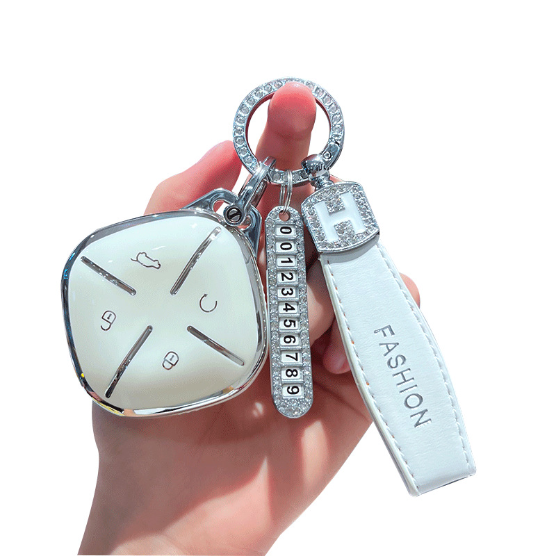 Chery J 모델 - 스마트 4버튼 [싱글 쉘 화이트] + 실버 우주 비행사 다이아몬드 버클 + 실버 번호판
