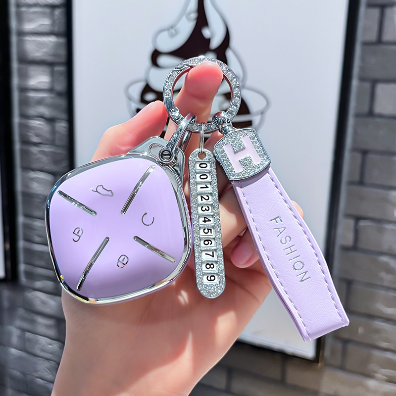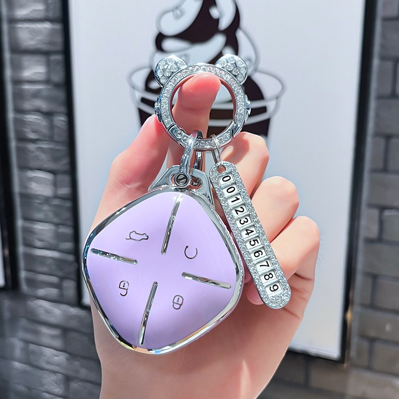 Chery J 모델 - 스마트 4버튼 [싱글 쉘 퍼플] + 퍼플 리본 다이아몬드 버클 + 실버 번호판