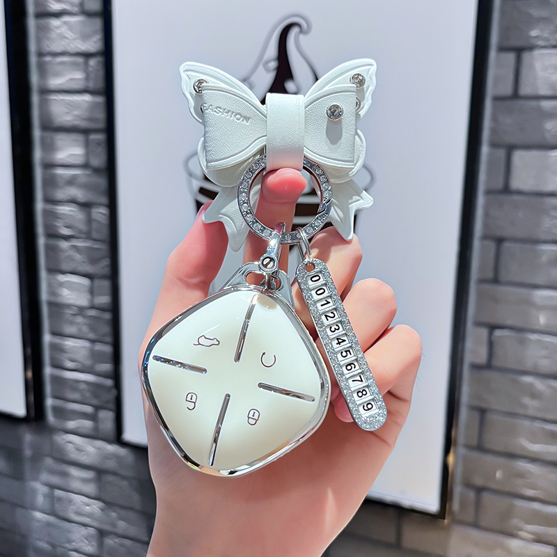Chery J 모델 - 스마트 4버튼 [싱글 쉘 화이트] + 화이트 리본 다이아몬드 버클 + 실버 번호판