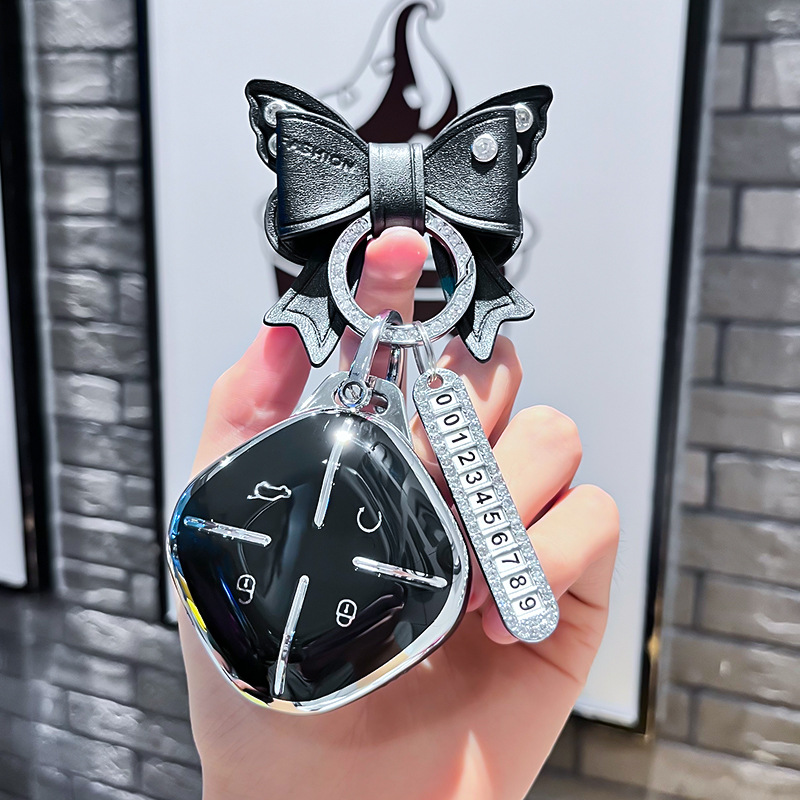 Chery J 모델 - 스마트 4버튼 [싱글 쉘 블랙] + 블랙 리본 다이아몬드 버클 + 실버 번호판