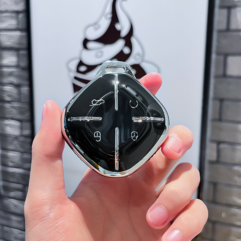 Chery J 모델 - 스마트 4버튼 [싱글 쉘 블랙] + 실버 우주 비행사 다이아몬드 버클 + 실버 번호판