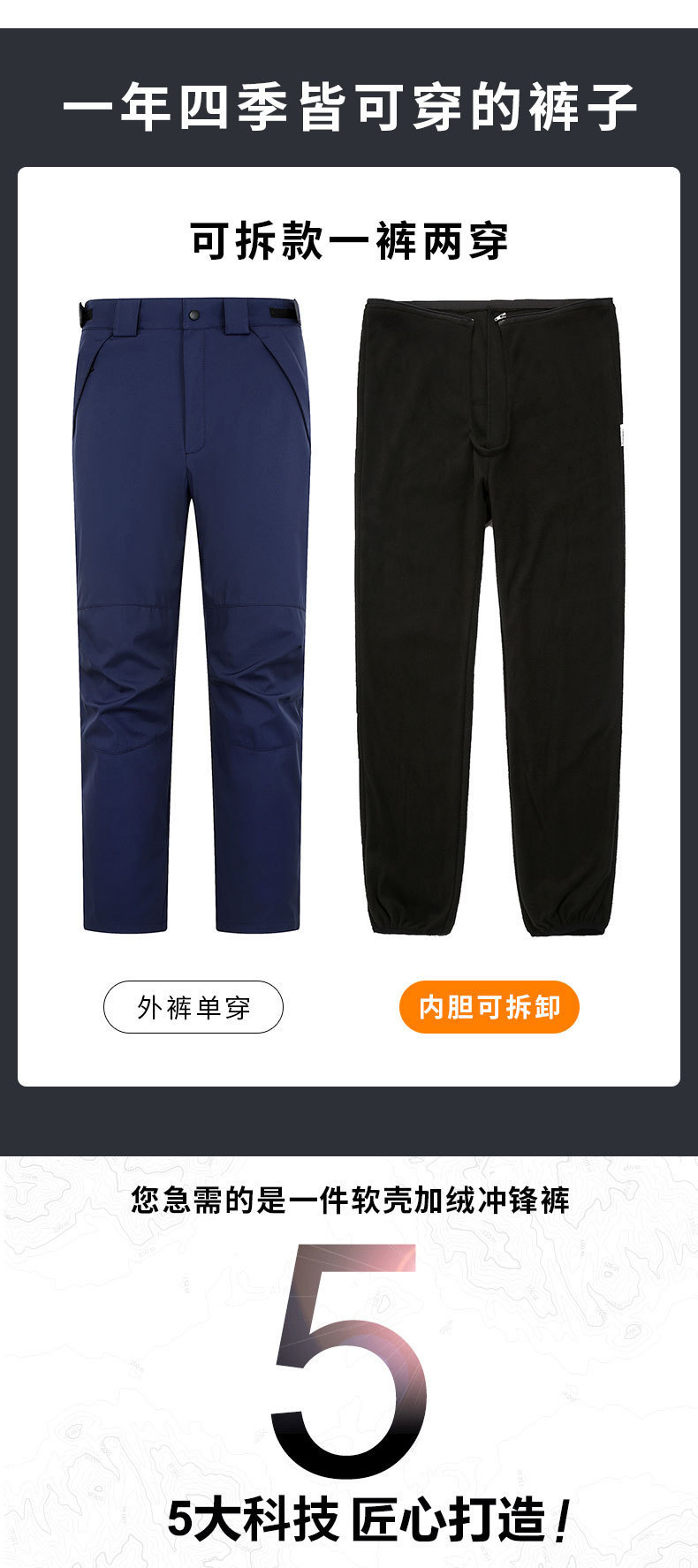 따뜻한 분리 가능한 투피스 방수 등반 바지 겨울 두꺼운 스키 양털 소프트 쉘 바지를 기모 남녀 충전 바지