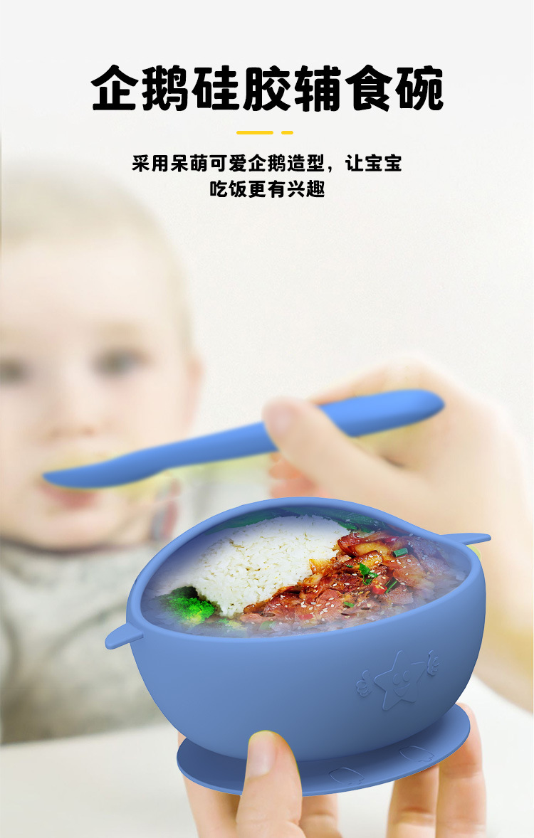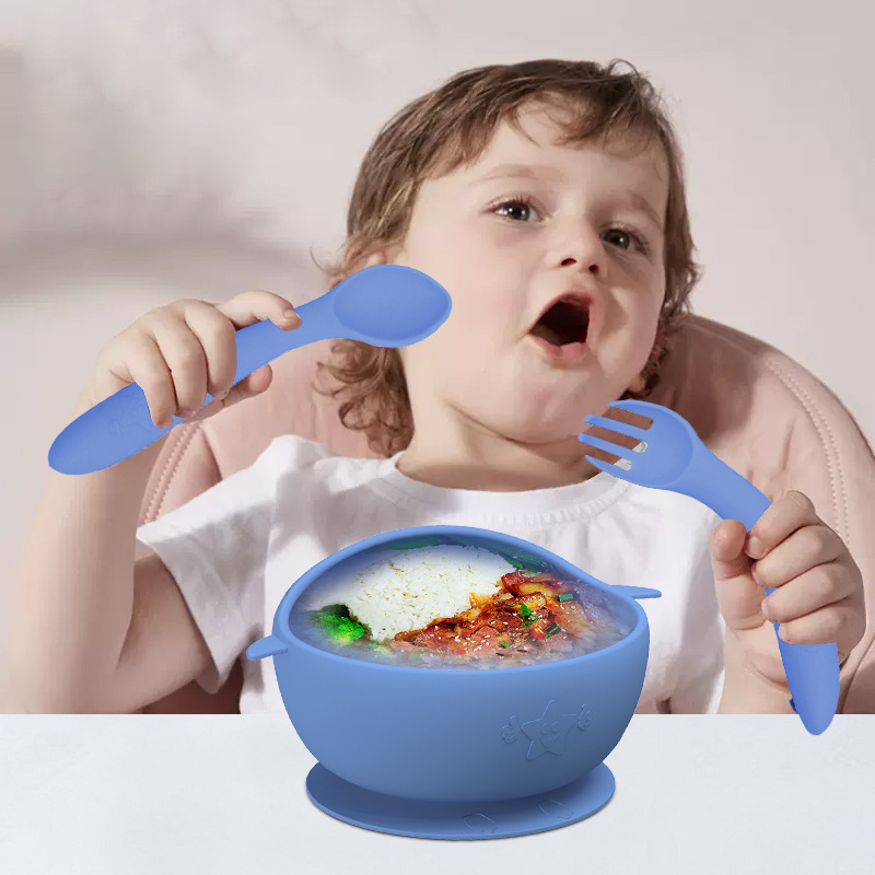 이유식 그릇 + 이유식 숟가락과 포크 + opp 포장 "다크 블루"