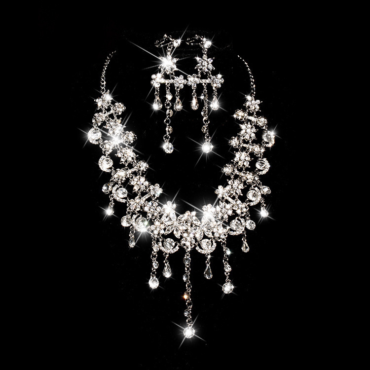 [소량 맞춤 제작] 해외 고급 신부 장신구 투피스 세트 파티 드레스 웨딩 쇄골 목걸이 귀걸이
