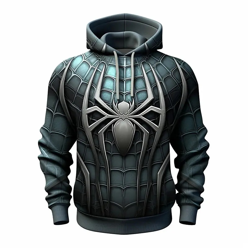 2024 남성 패션 스웨트 셔츠 3D 스파이더 프린트 가을 캐주얼 패턴 대형 후드 트렌디 하라주쿠 거리
