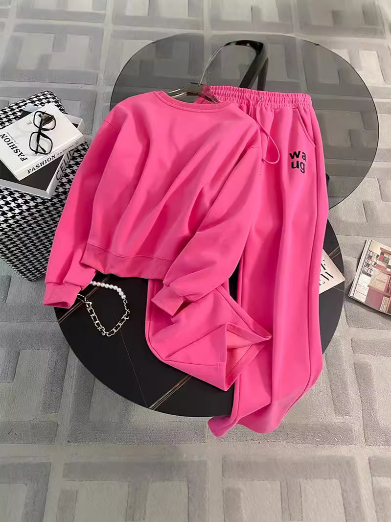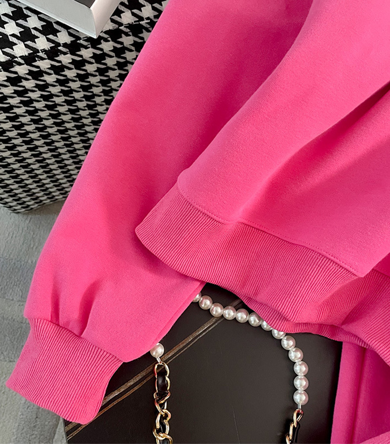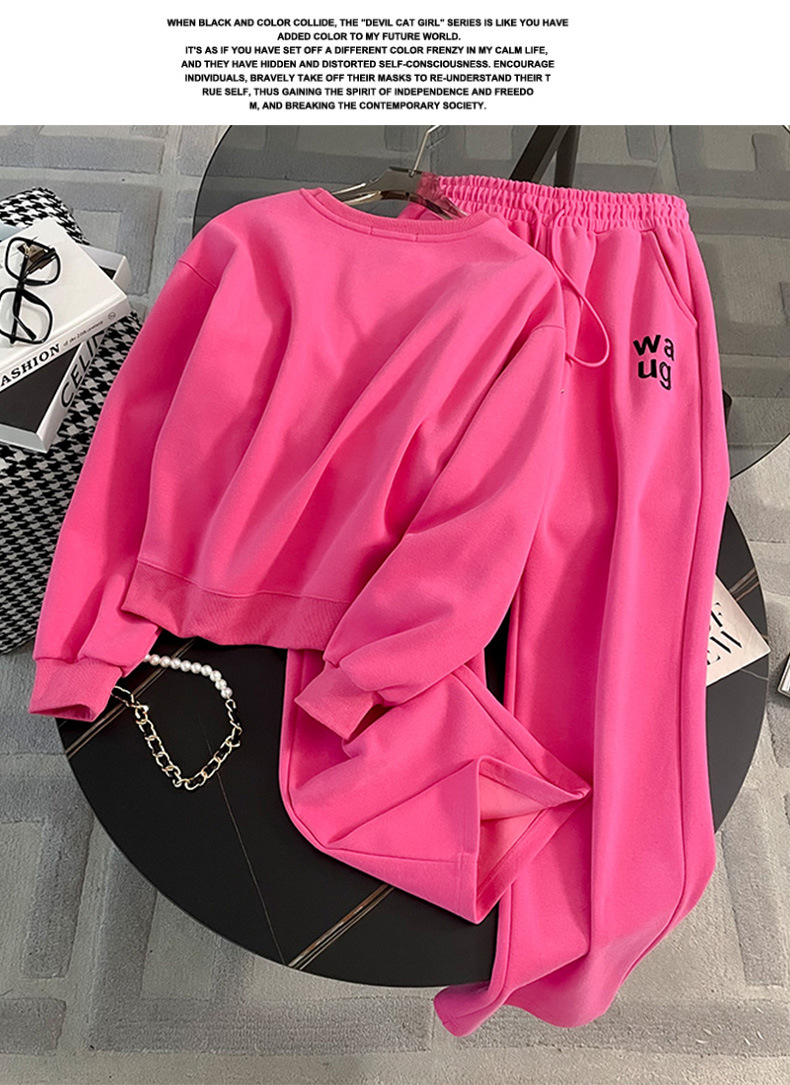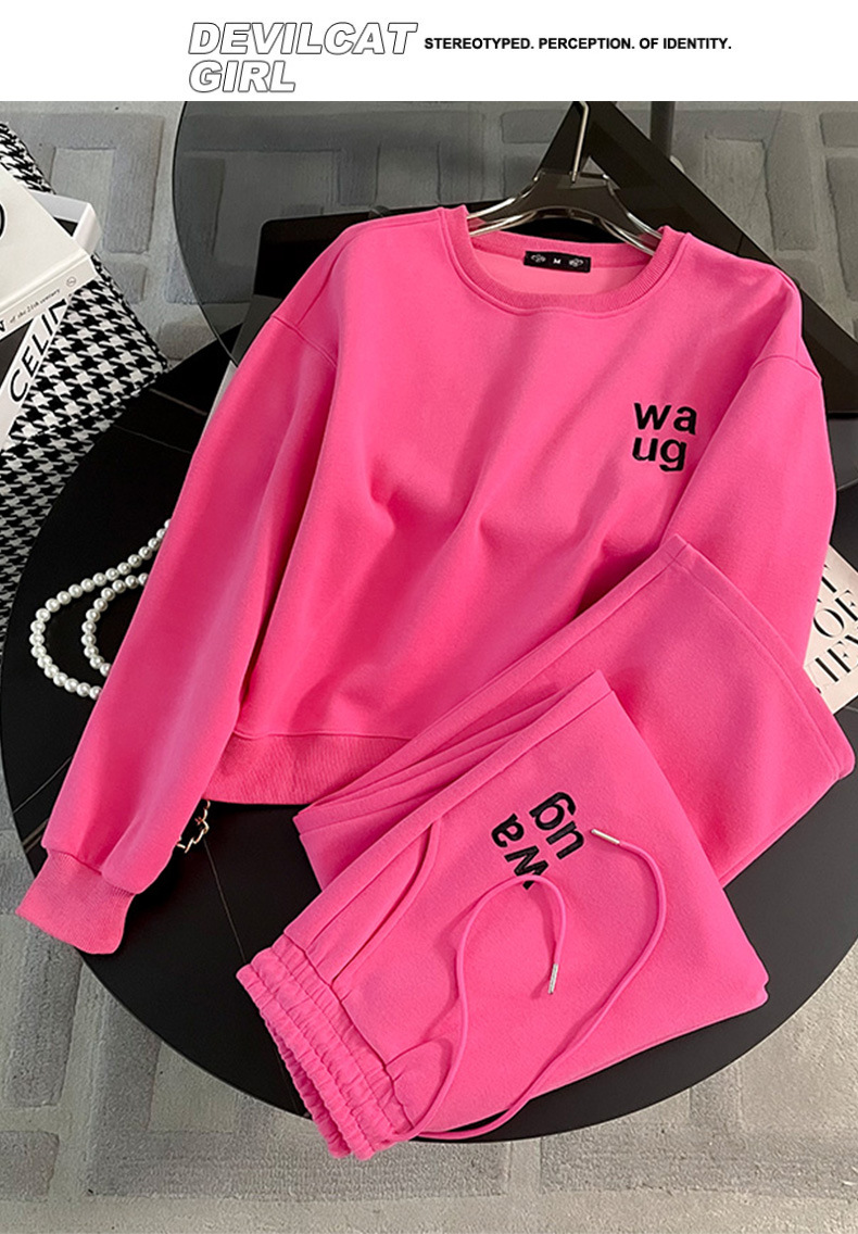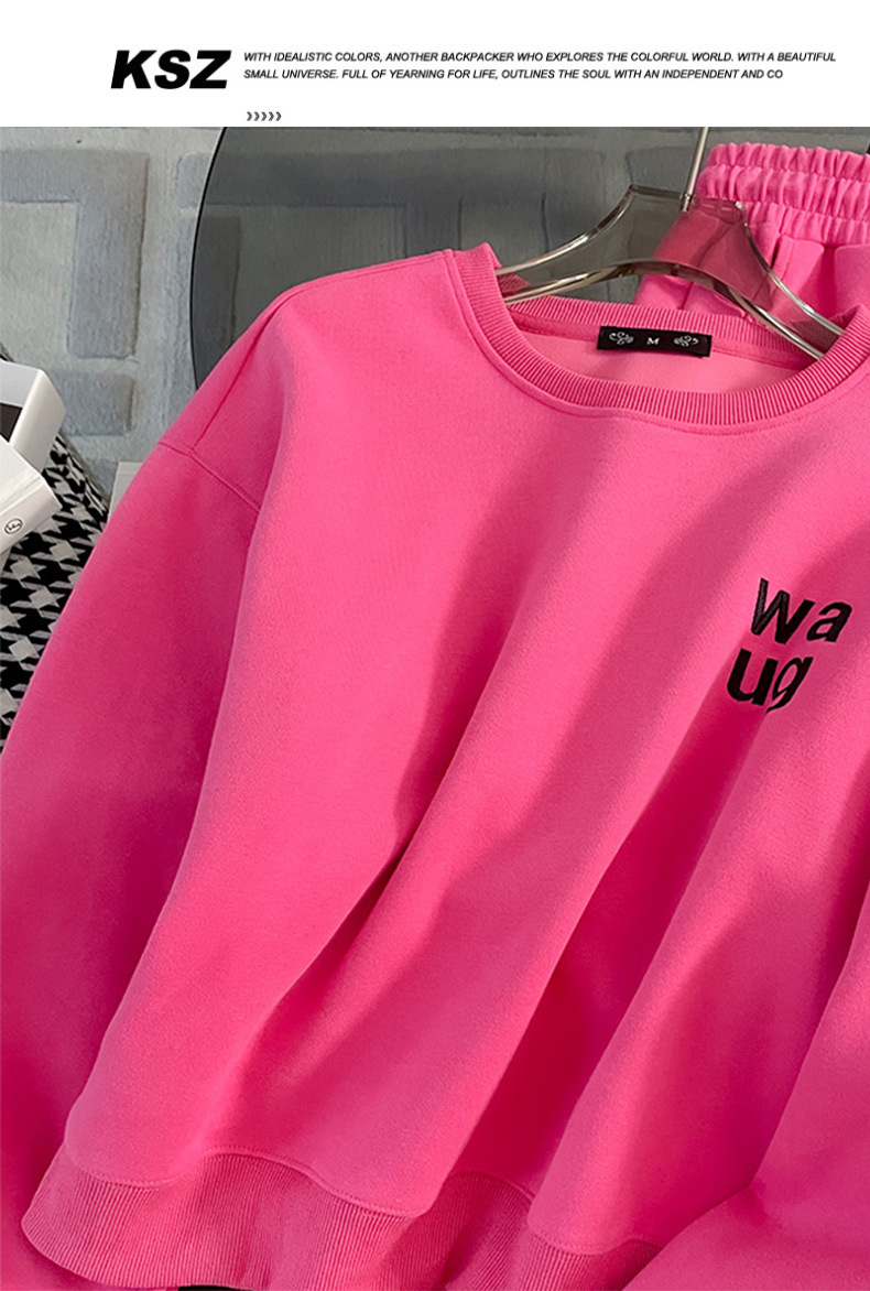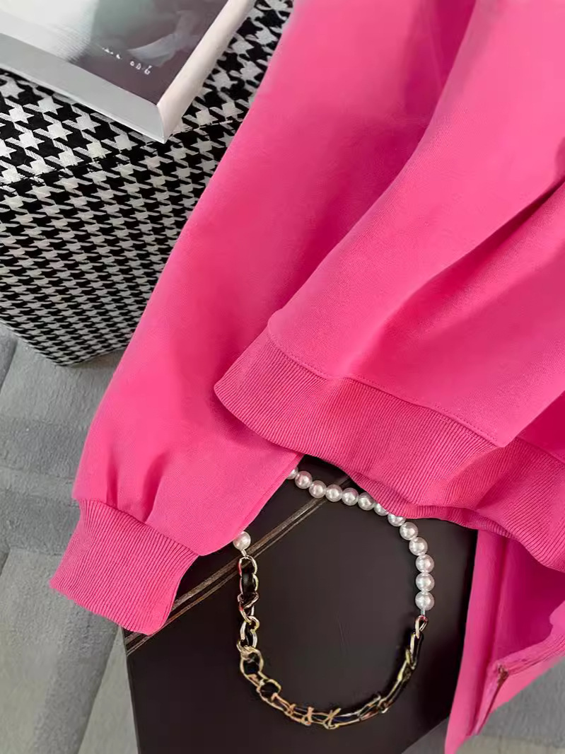 2025년 초가을/겨울 유럽풍 캐주얼 스포츠 세트, 세련된 핑크색 스웨트셔츠 투피스 세트, 남남유 고급스러운 스타일