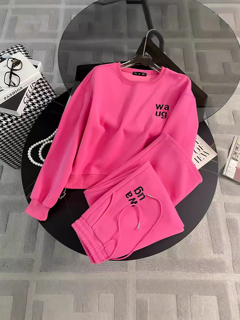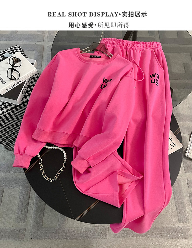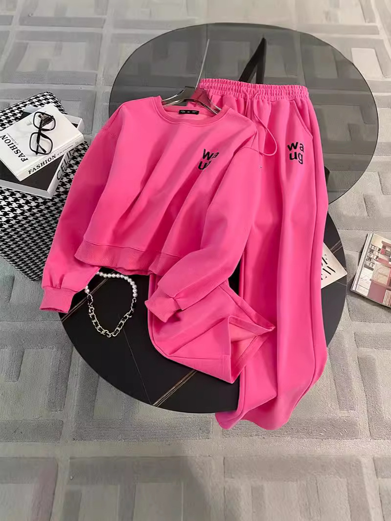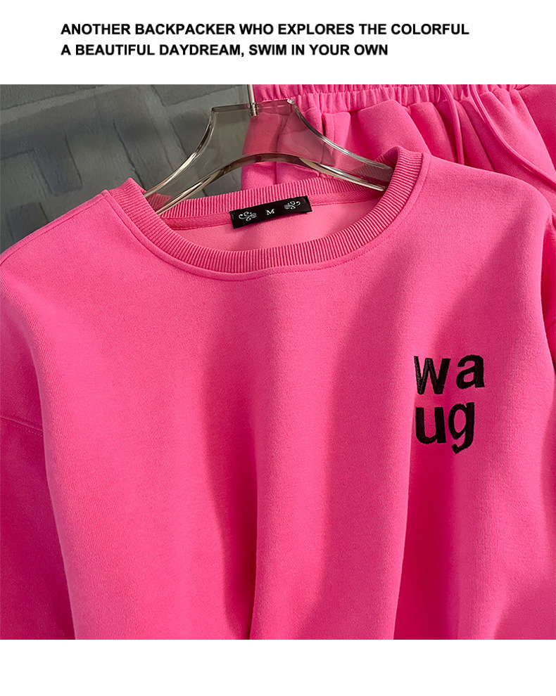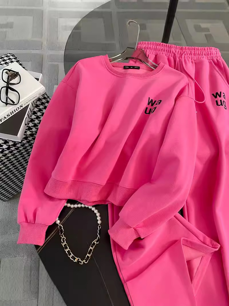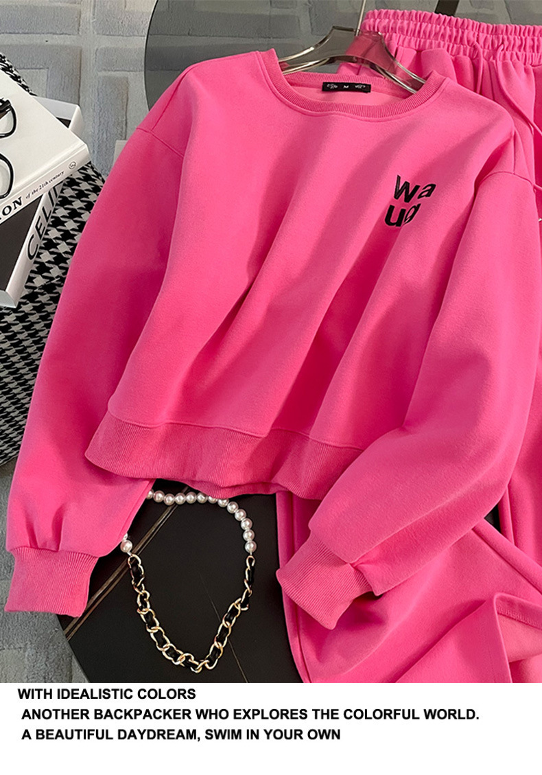 2025년 초가을/겨울 유럽풍 캐주얼 스포츠 세트, 세련된 핑크색 스웨트셔츠 투피스 세트, 남남유 고급스러운 스타일