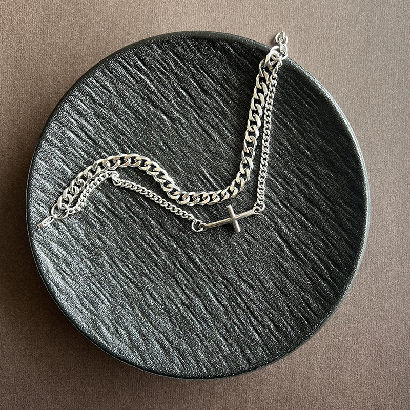 국경 간 펑크 스타일 더블 레이어 틈새 하이 레벨 크로스 팔찌 조커 힙합 패션 디자인 보석 도매