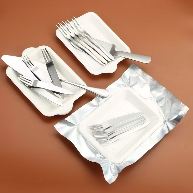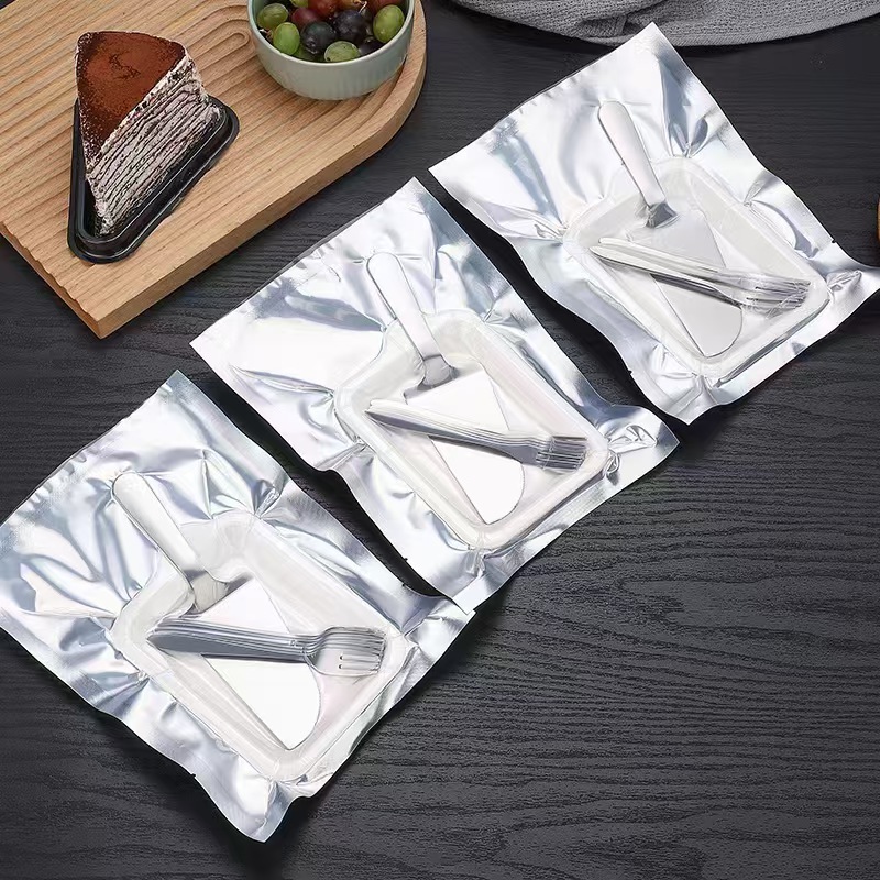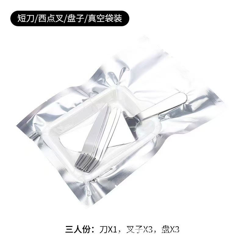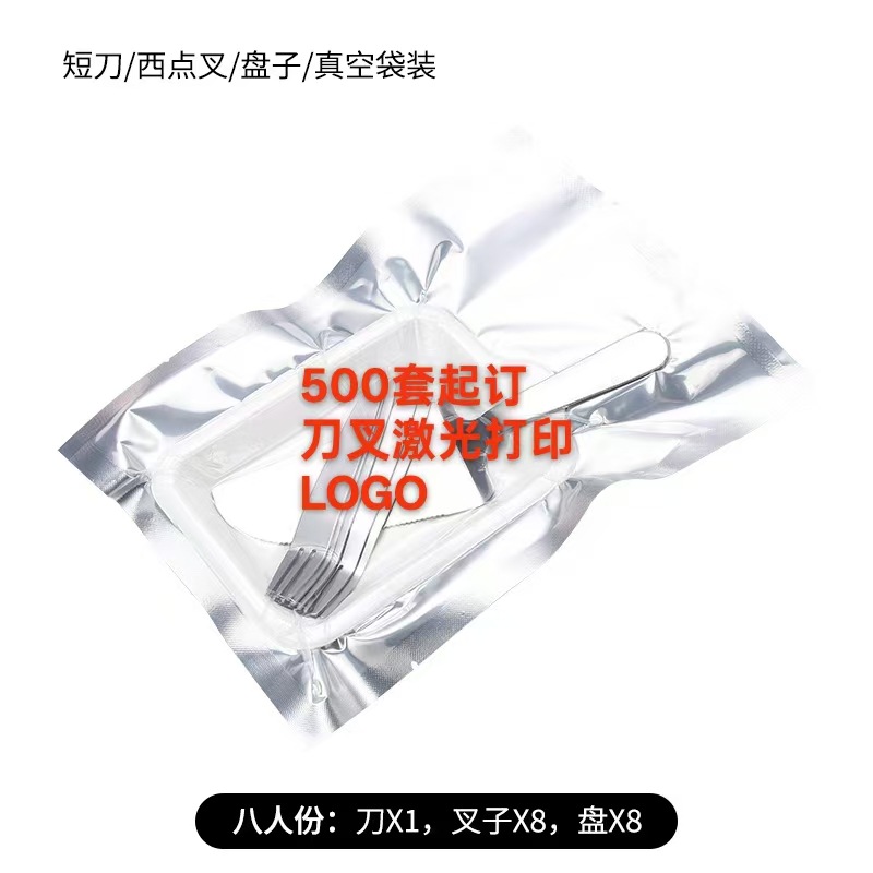 스테인레스 스틸 진공 케이크 식기 생일 케이크 식기 휴대용 나이프와 포크 스푼 플레이트 세트 식기 인쇄 가능한 로고