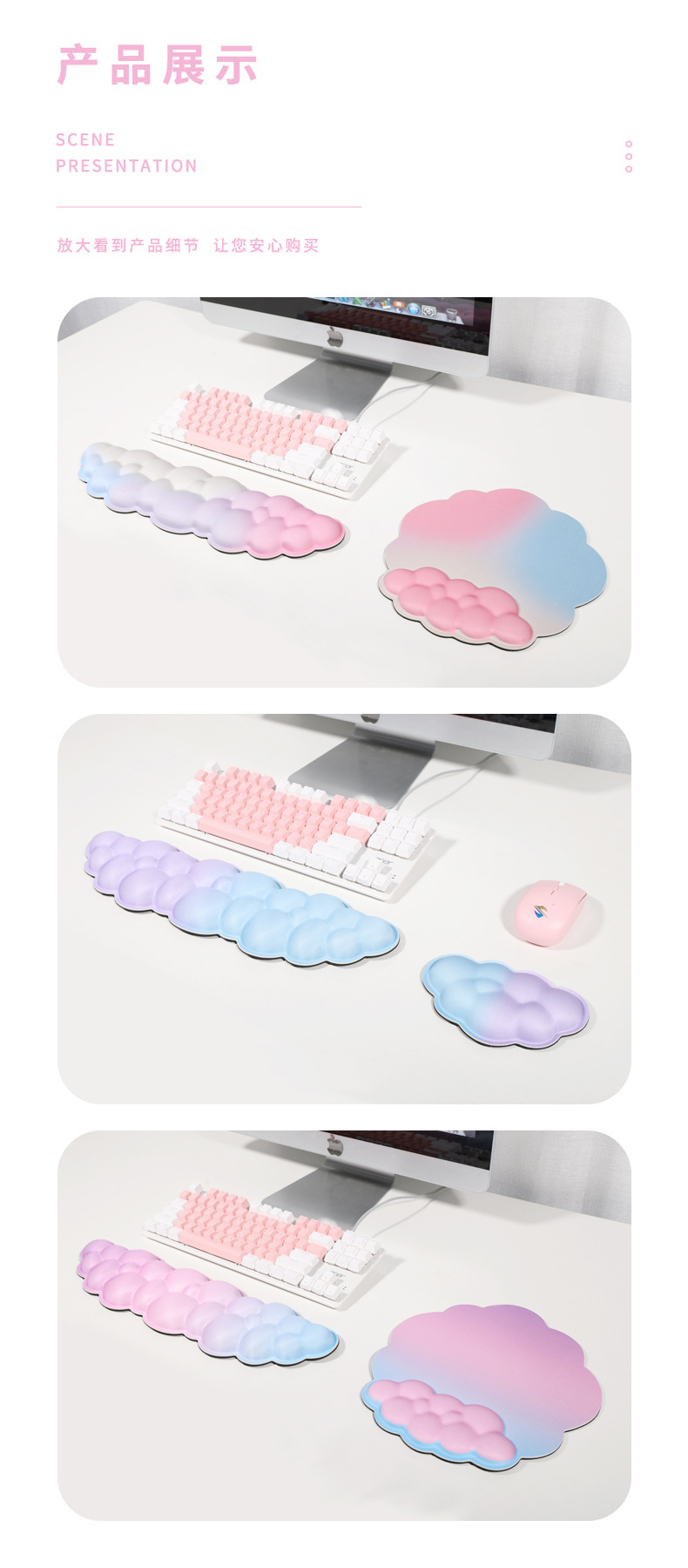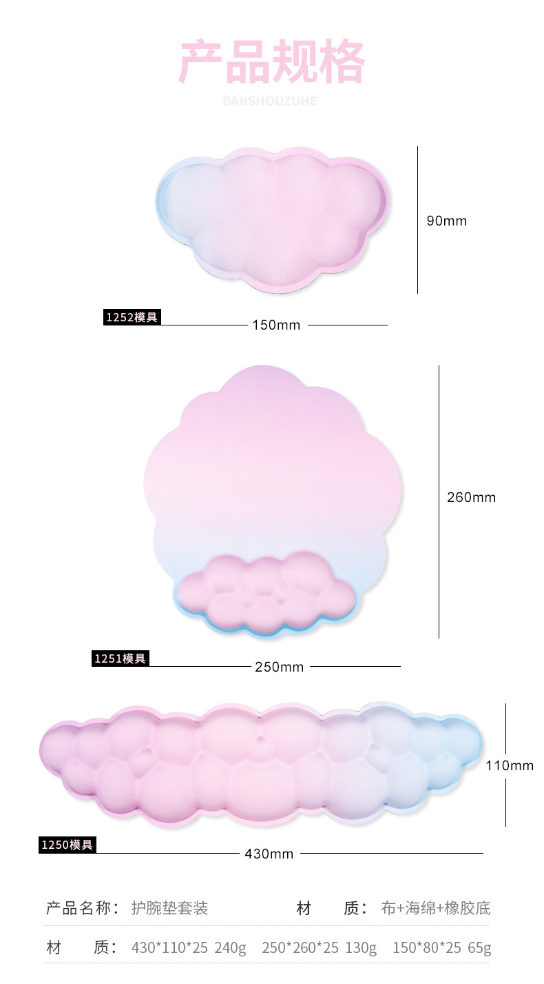 클라우드 폼 손목 밴드 마우스 패드 도매 스몰 사이즈 사무실 데스크탑 손 베개 확장 대형 미끄럼 방지 키보드 패드