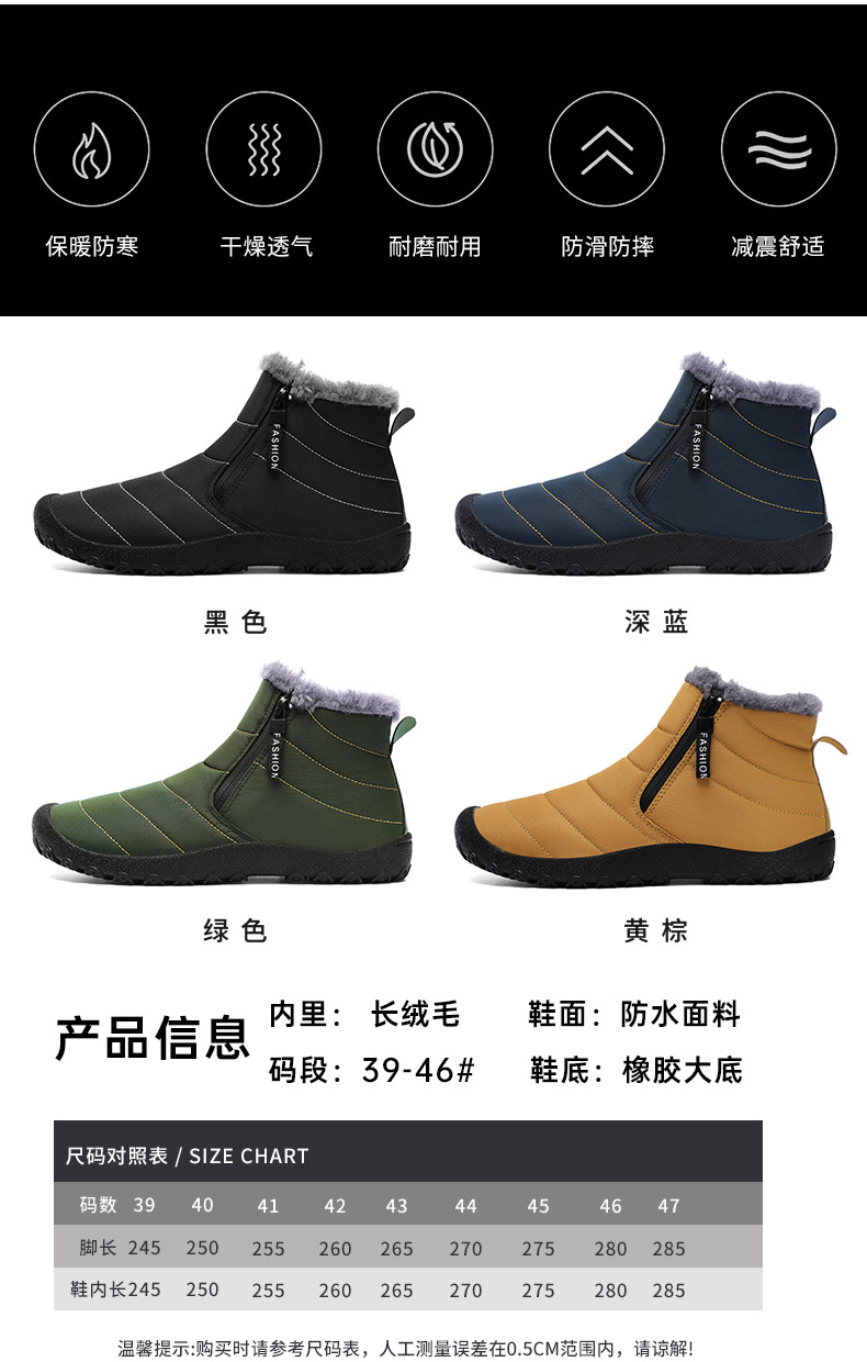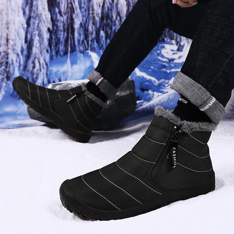 새로운 플러스 사이즈 남성 스노우 부츠 겨울 야외 두꺼운 따뜻한 미끄럼 면화 지퍼 기모 남성용 겨울 부츠