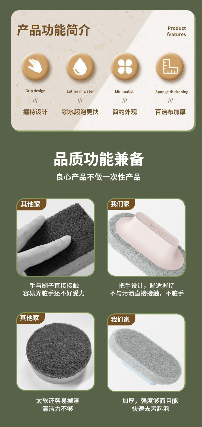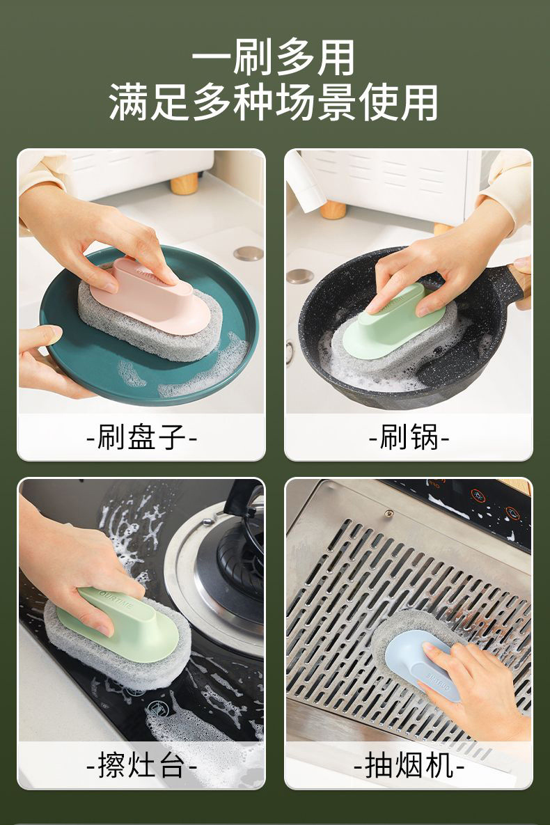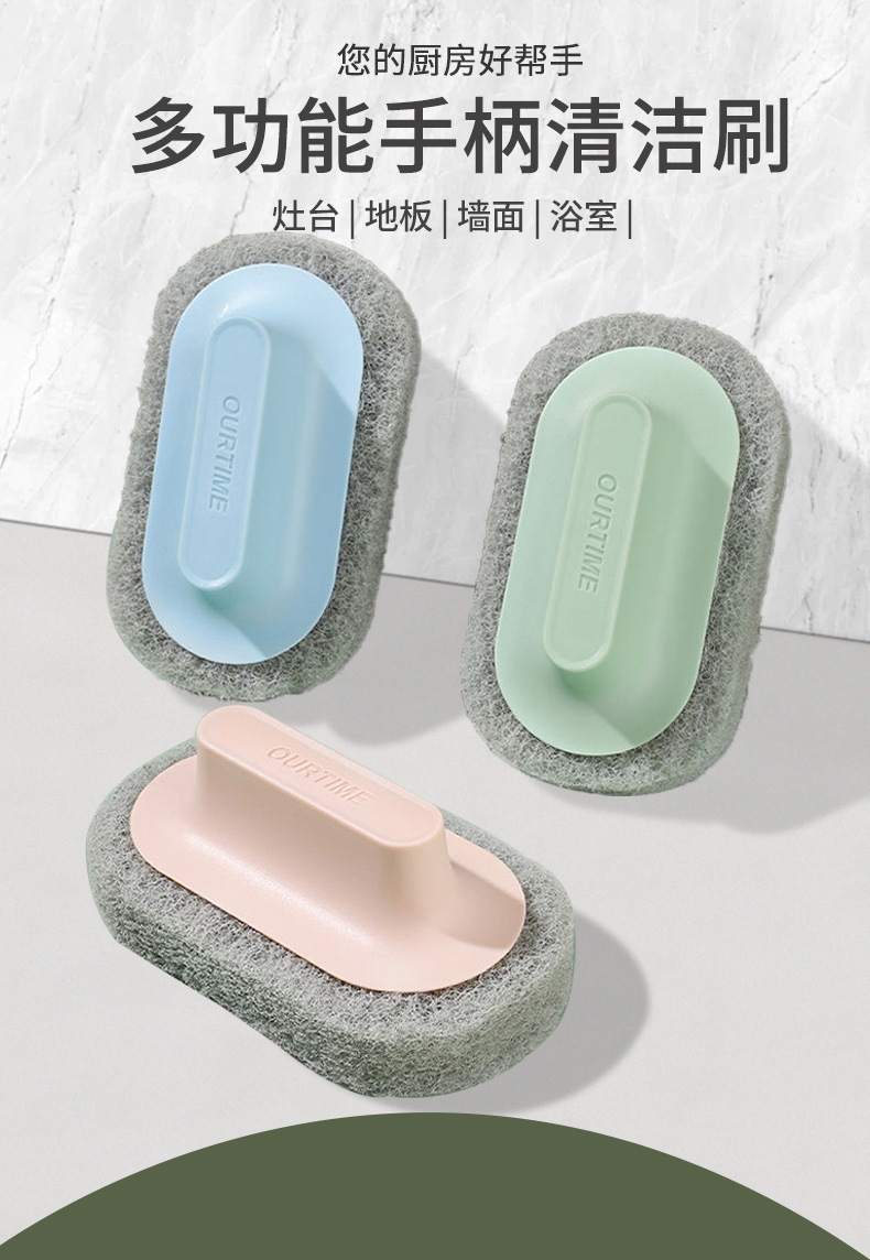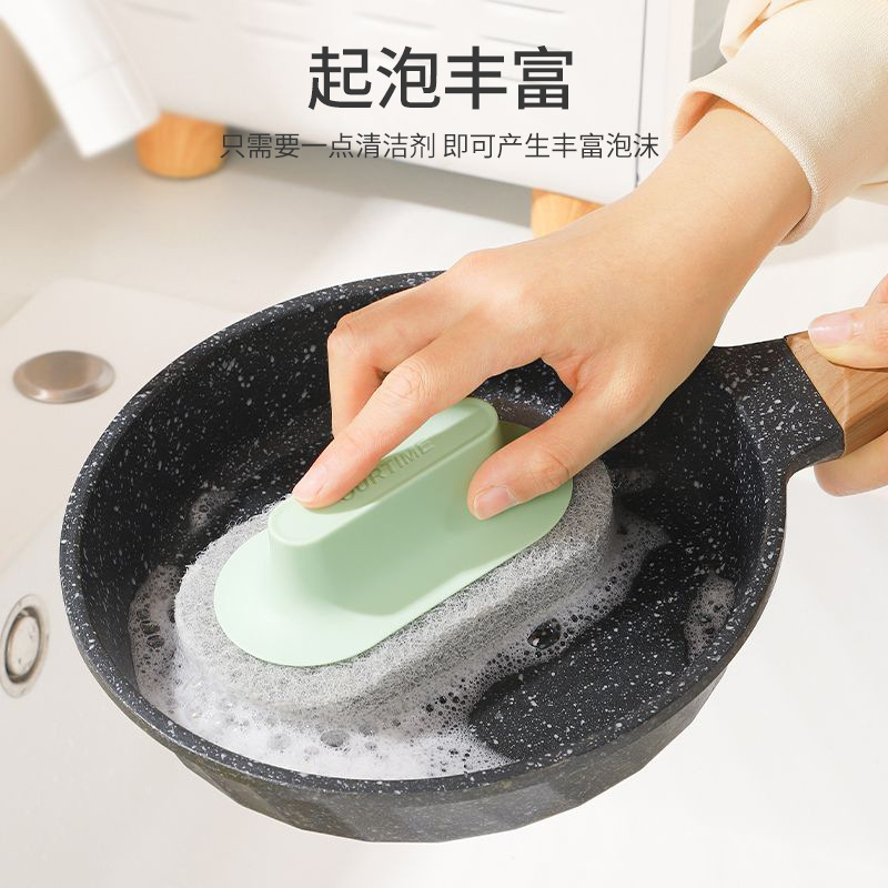 손잡이가있는 욕조 청소 브러시 주방 스폰지 닦아 분지 스토브 타일 욕실 벽 오염 제거 냄비 그릇 신들