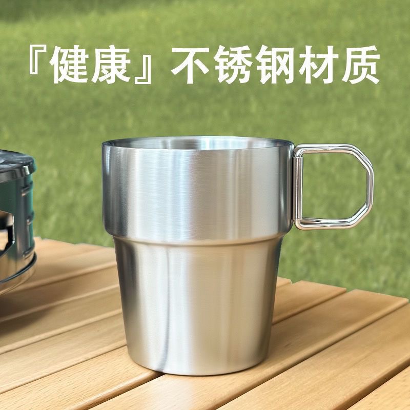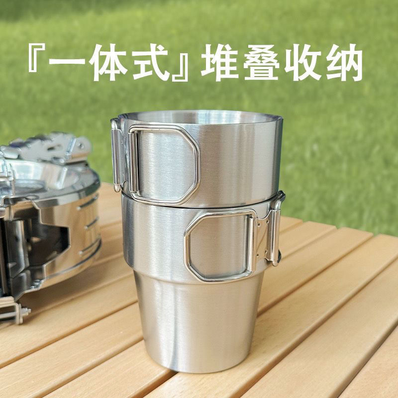 맥주 컵 커피 컵 한국 입 컵 접는 손잡이 야외 캠핑 304 스테인레스 스틸 더블 레이어 워터 컵