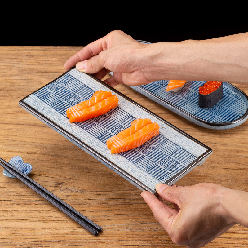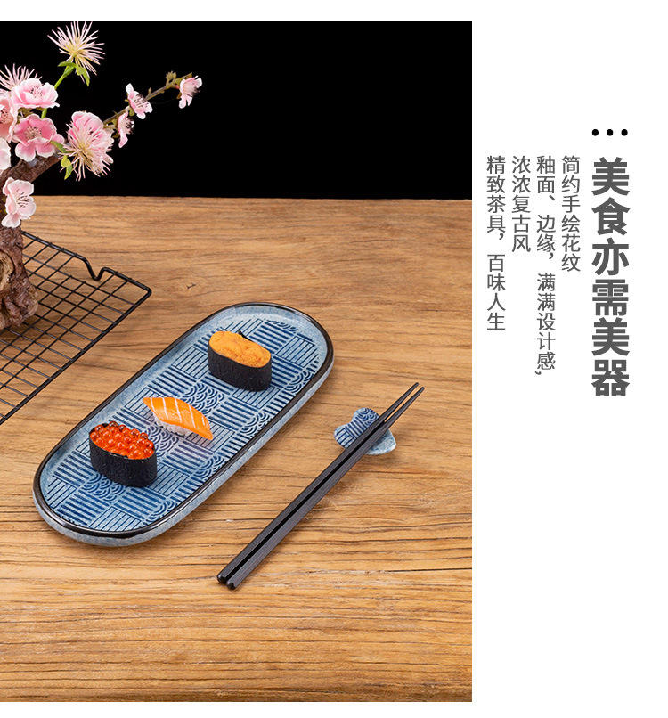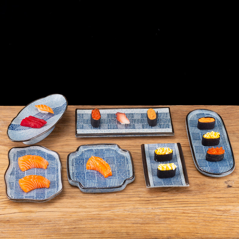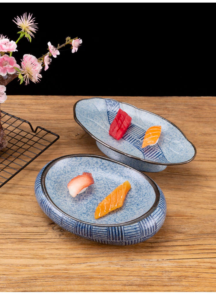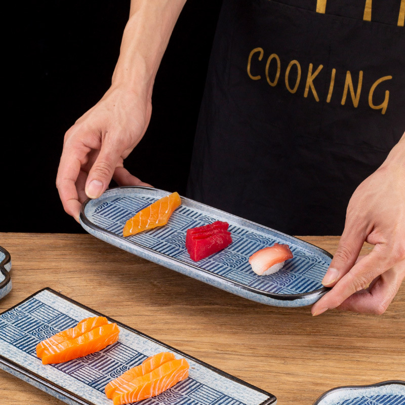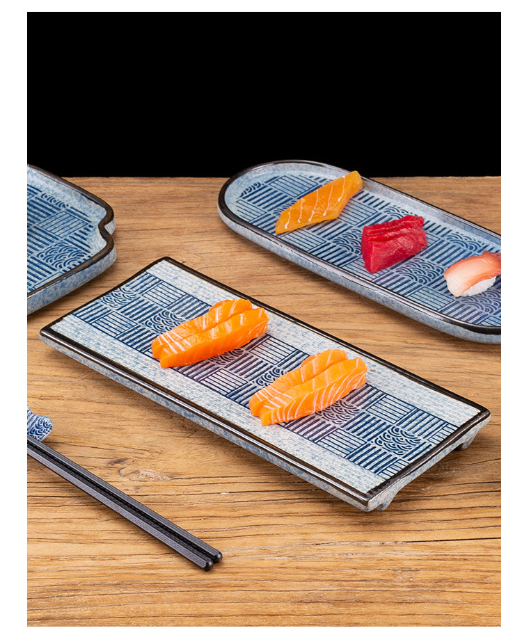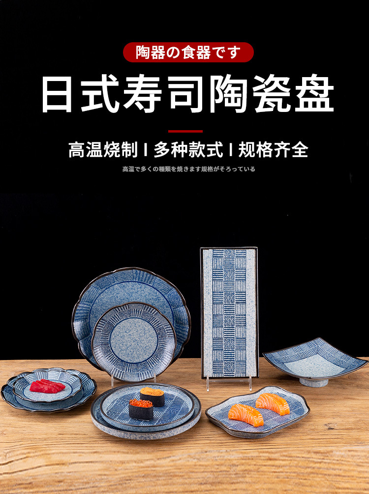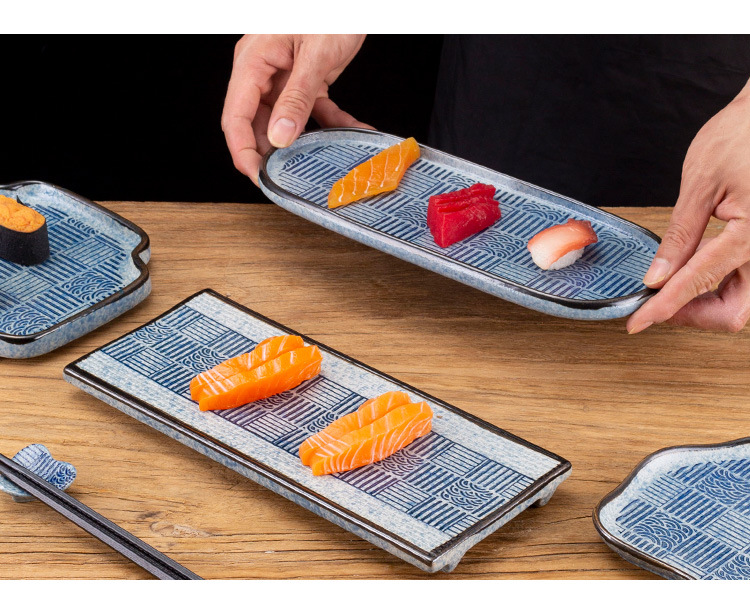 일본식 스시 플레이트 한국식 핫 포트 이사카야 불타는 새 접시 칭하이 웨이브 스트립 접시 라운드 접시 호텔 세라믹 식기