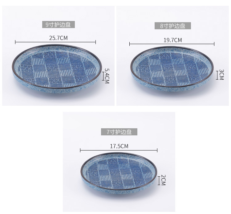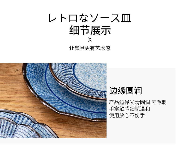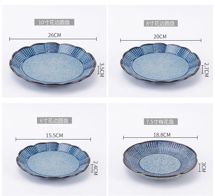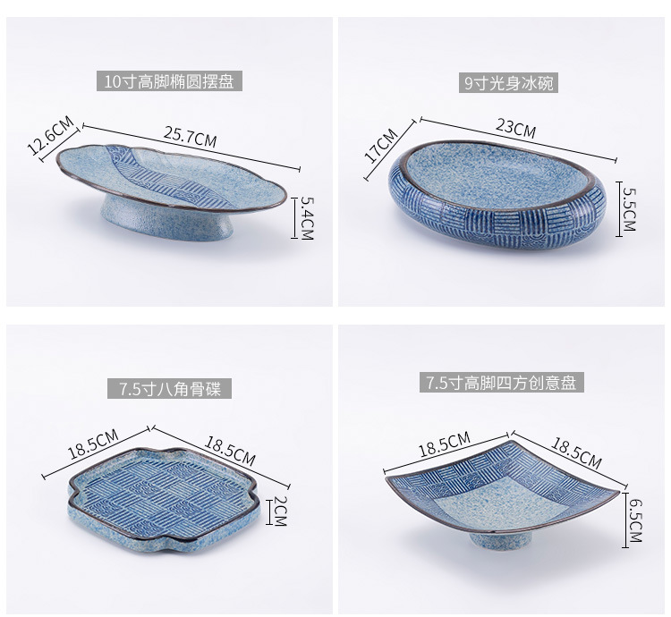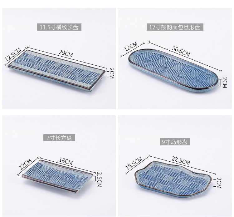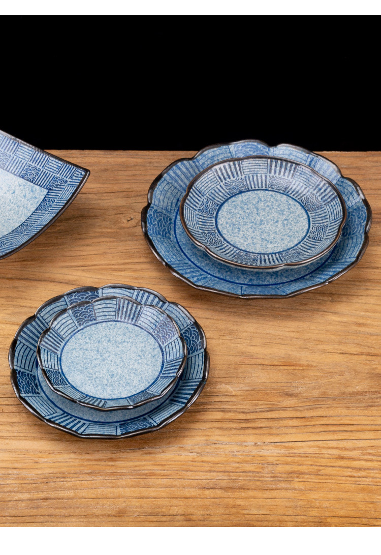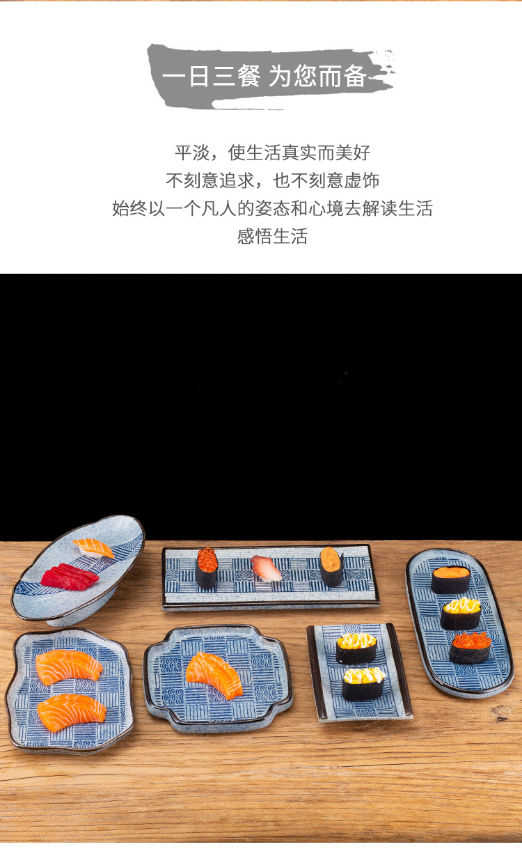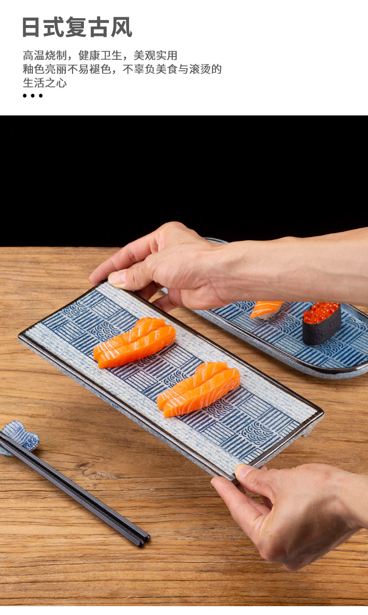 일본식 스시 플레이트 한국식 핫 포트 이사카야 불타는 새 접시 칭하이 웨이브 스트립 접시 라운드 접시 호텔 세라믹 식기