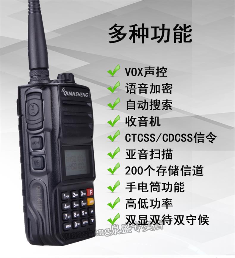 인터콤 Quansheng 블랙 킹 콩 UV2PLUS 고출력 야외 핸드셋 10W 자율 주행 투어 인터콤 소형 핸드셋