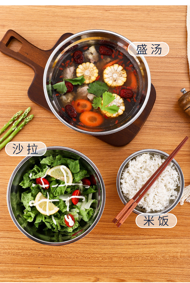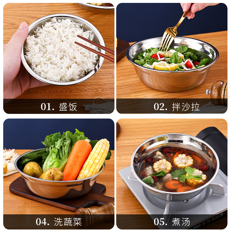 304 식품 학년 스테인레스 스틸 수프 분지 학교 매점 쌀 냄비 수프 그릇 두꺼운 레스토랑 주방 야채 냄비