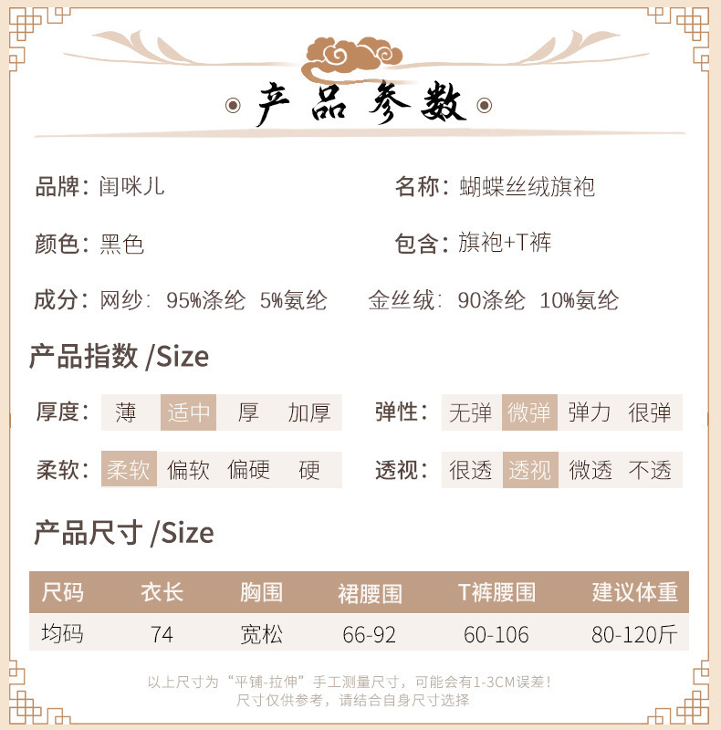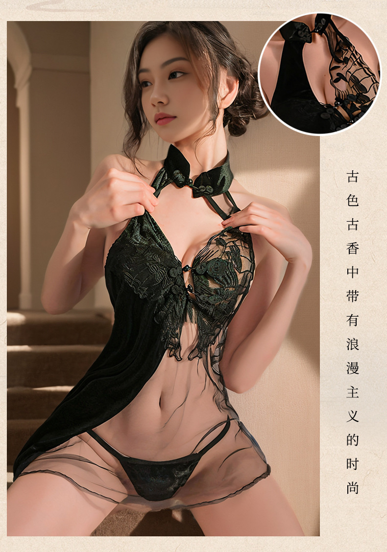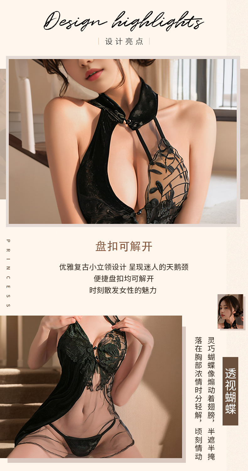 섹시한 란제리 복고풍 나비 패턴 할로우 관향 가방 힙합 벨벳 순수한 욕망 청삼 유니폼 파자마 세트