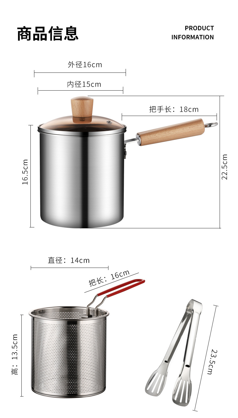 3L 단일 냄비 + 뚜껑 + 튀김 바구니 + 푸드 클립