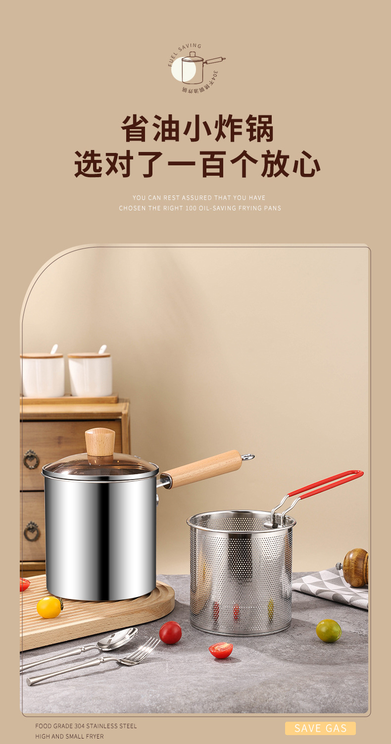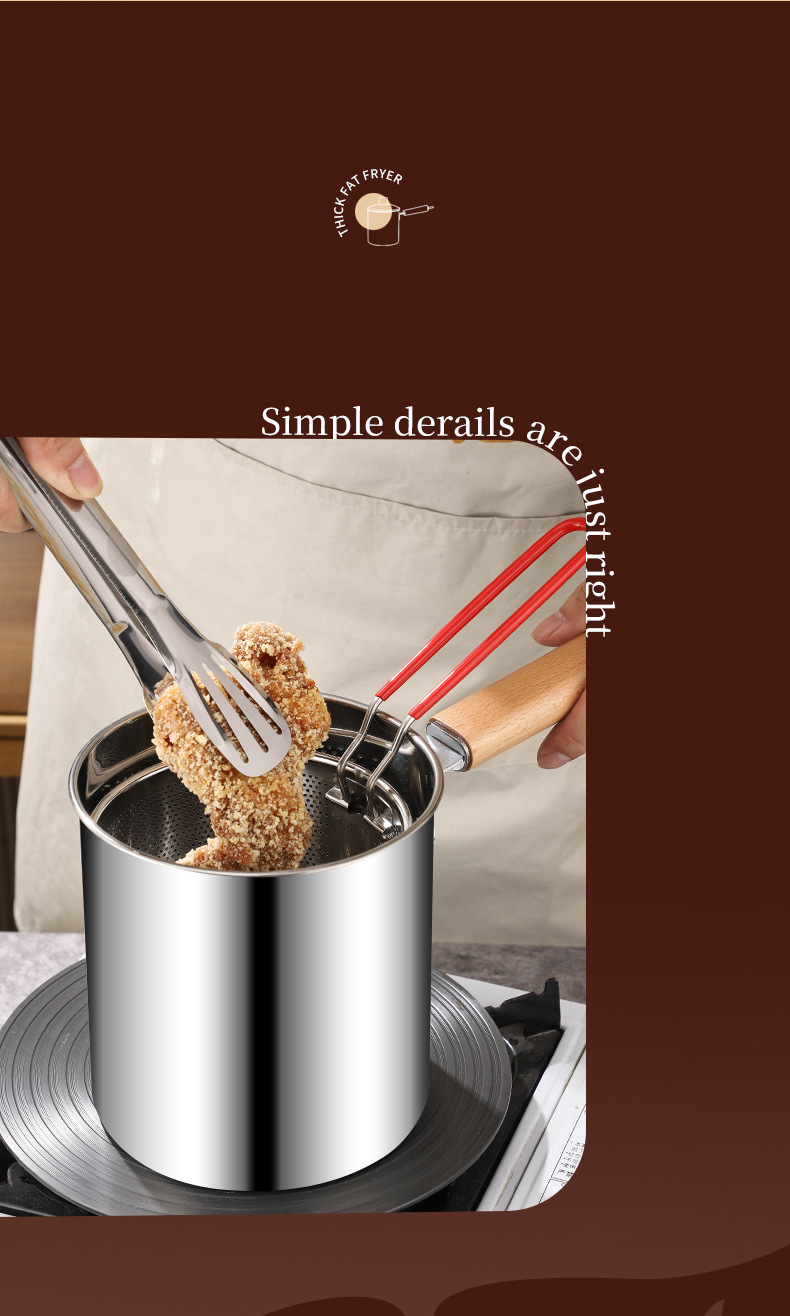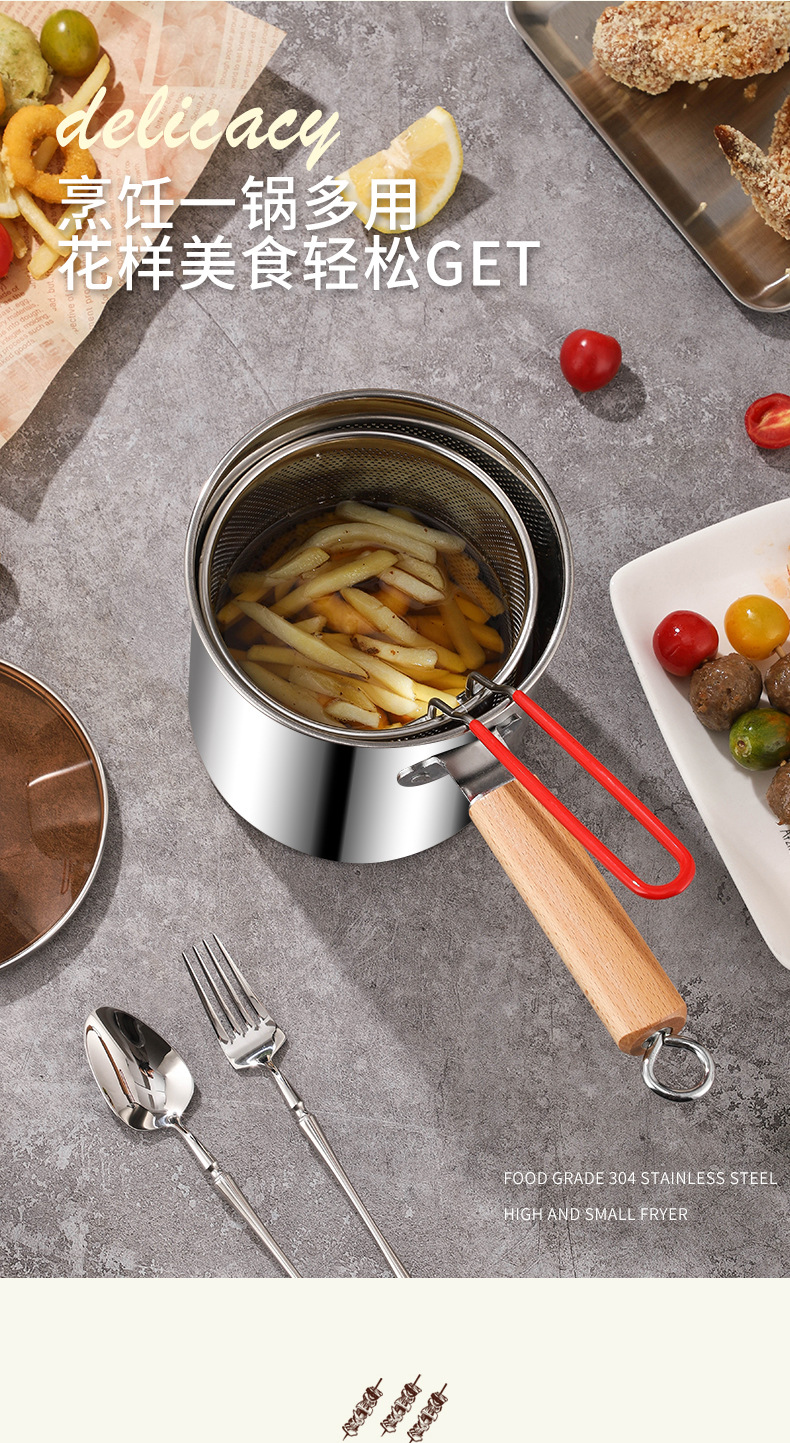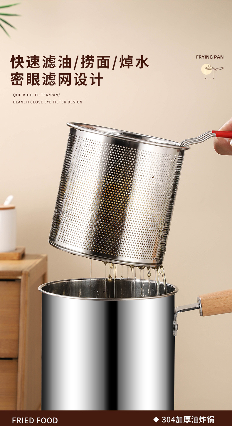 엄선된 304 스테인리스 스틸 가정용 대용량 튀김기, 필터망 포함, 전자레인지 및 가스레인지 겸용, 절전형 깊은 냄비